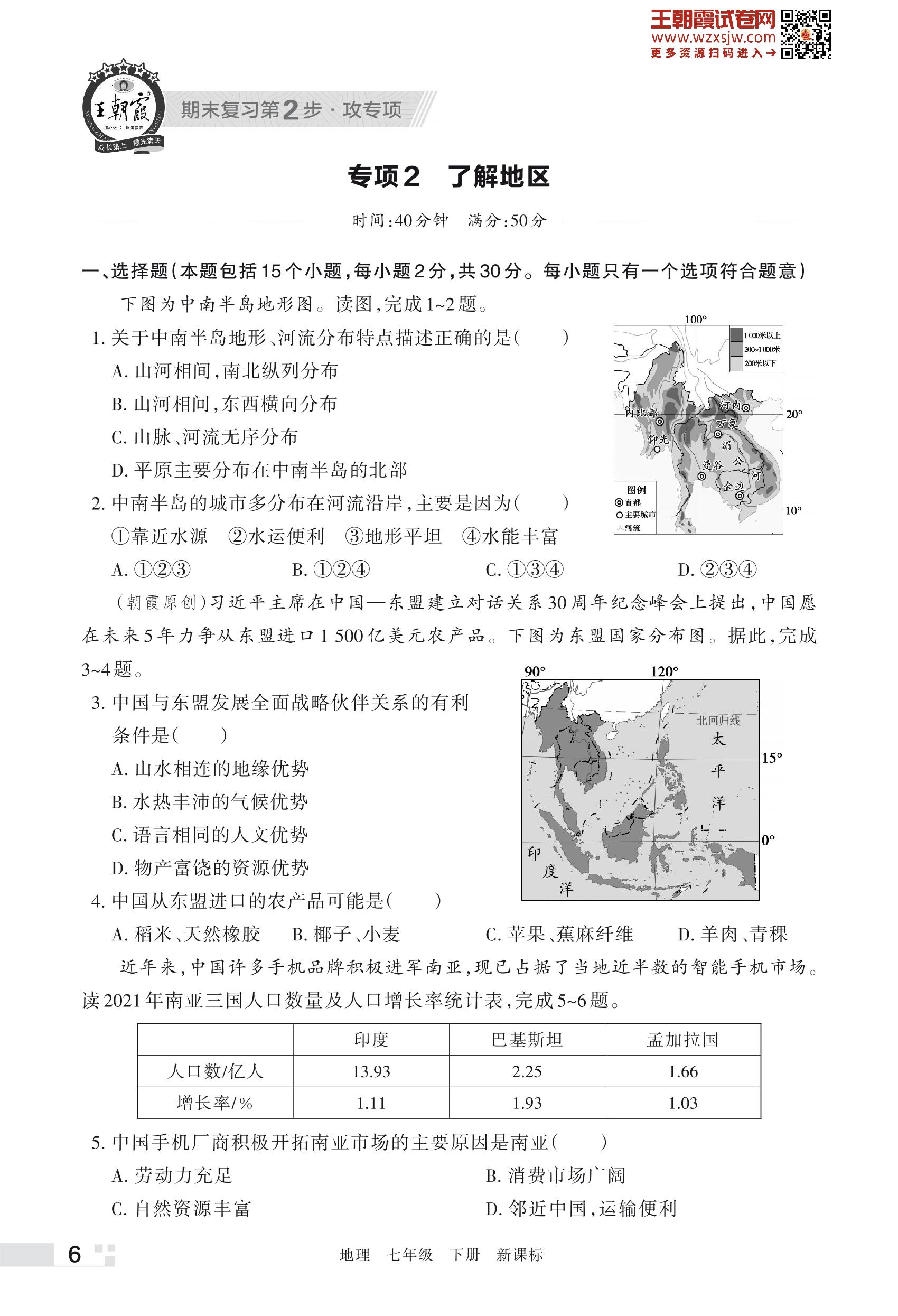 王朝霞期末专项卷——了解地区七年级下册地理(新课标版)【2】