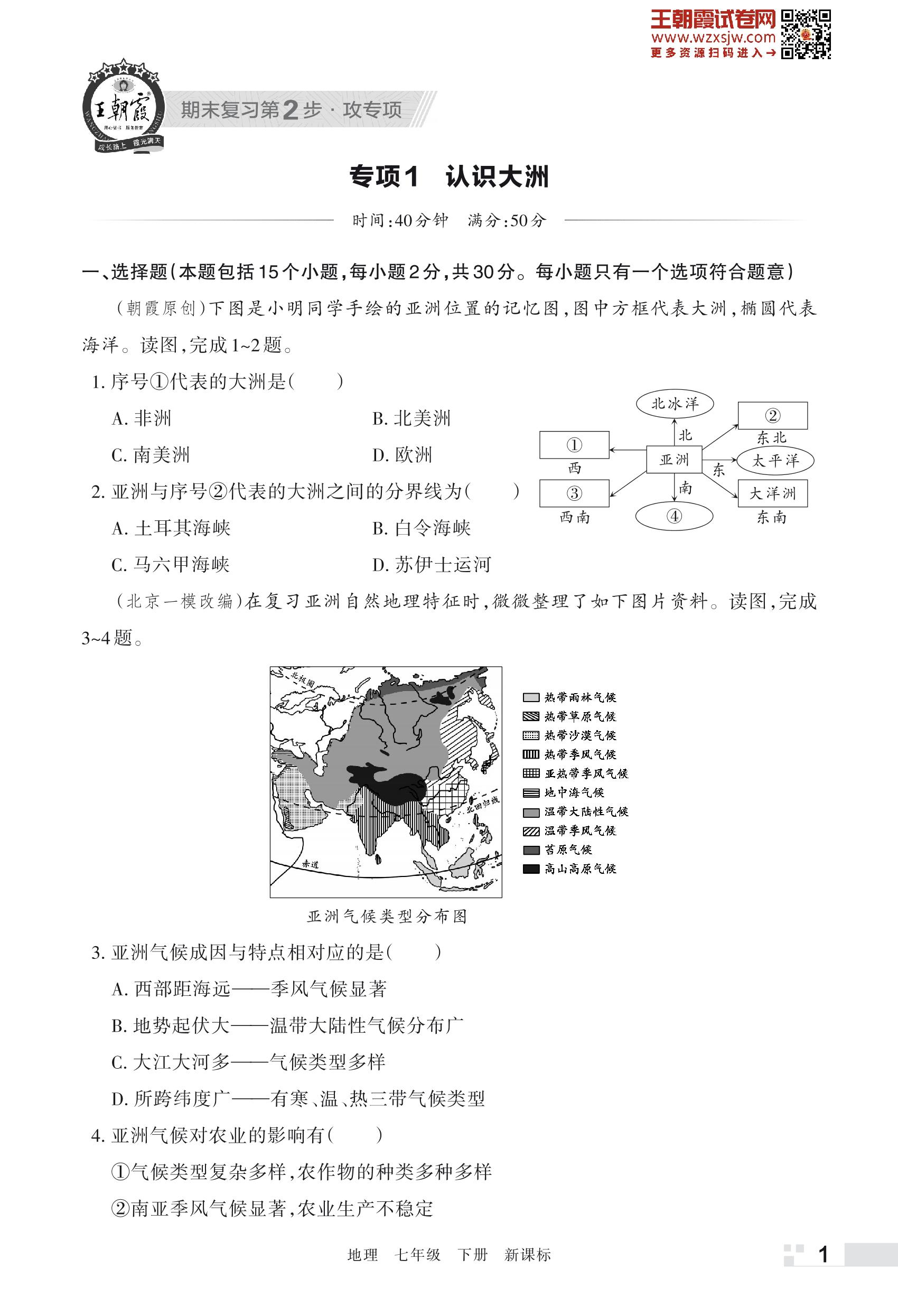 王朝霞期末专项卷——认识大洲七年级下册地理(新课标版)【1】