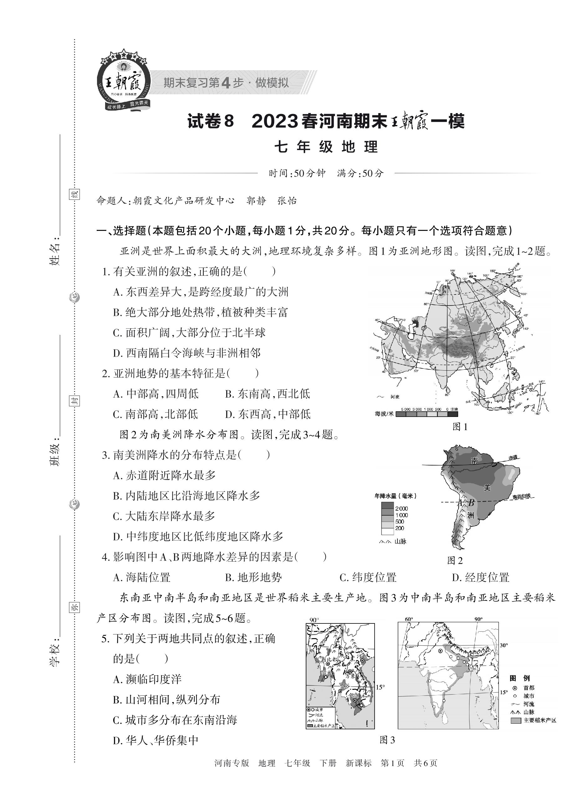 王朝霞期末模拟卷七年级下册地理(新课标版)_R230428152727875【8】
