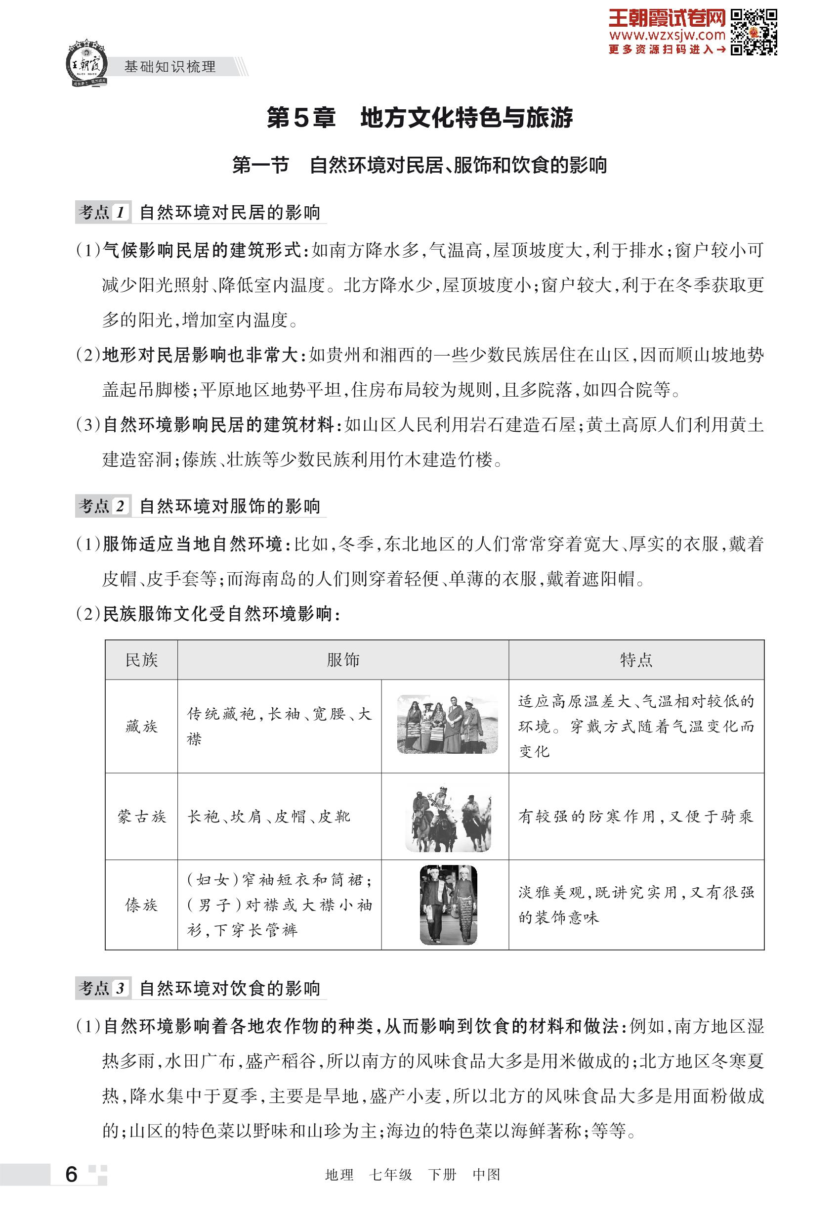 王朝霞期末知识梳理——第5章 地方文化特色与旅游七年级下册地理(中图版)