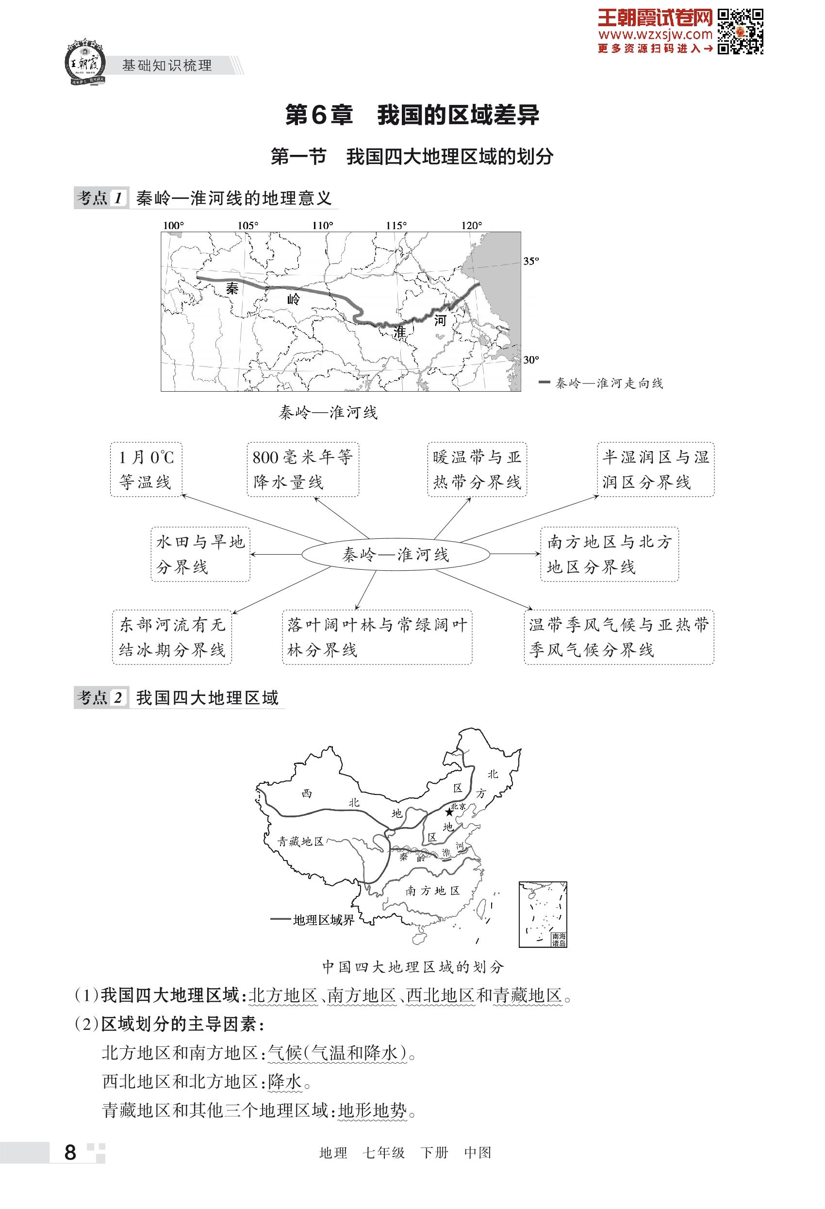 王朝霞期末知识梳理——第6章 我国的区域差异七年级下册地理(中图版)