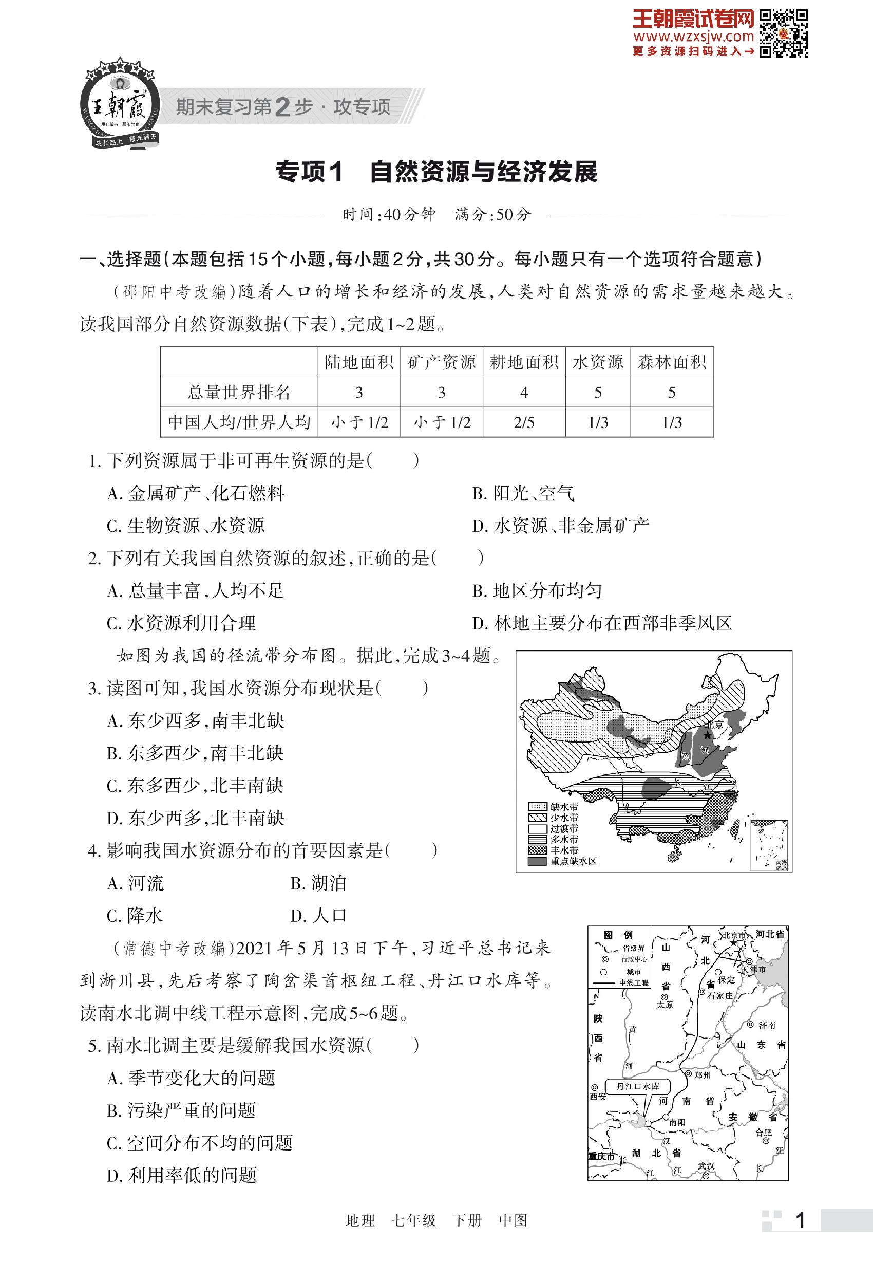 王朝霞期末专项卷——自然资源与经济发展七年级下册地理(中图版)【1】