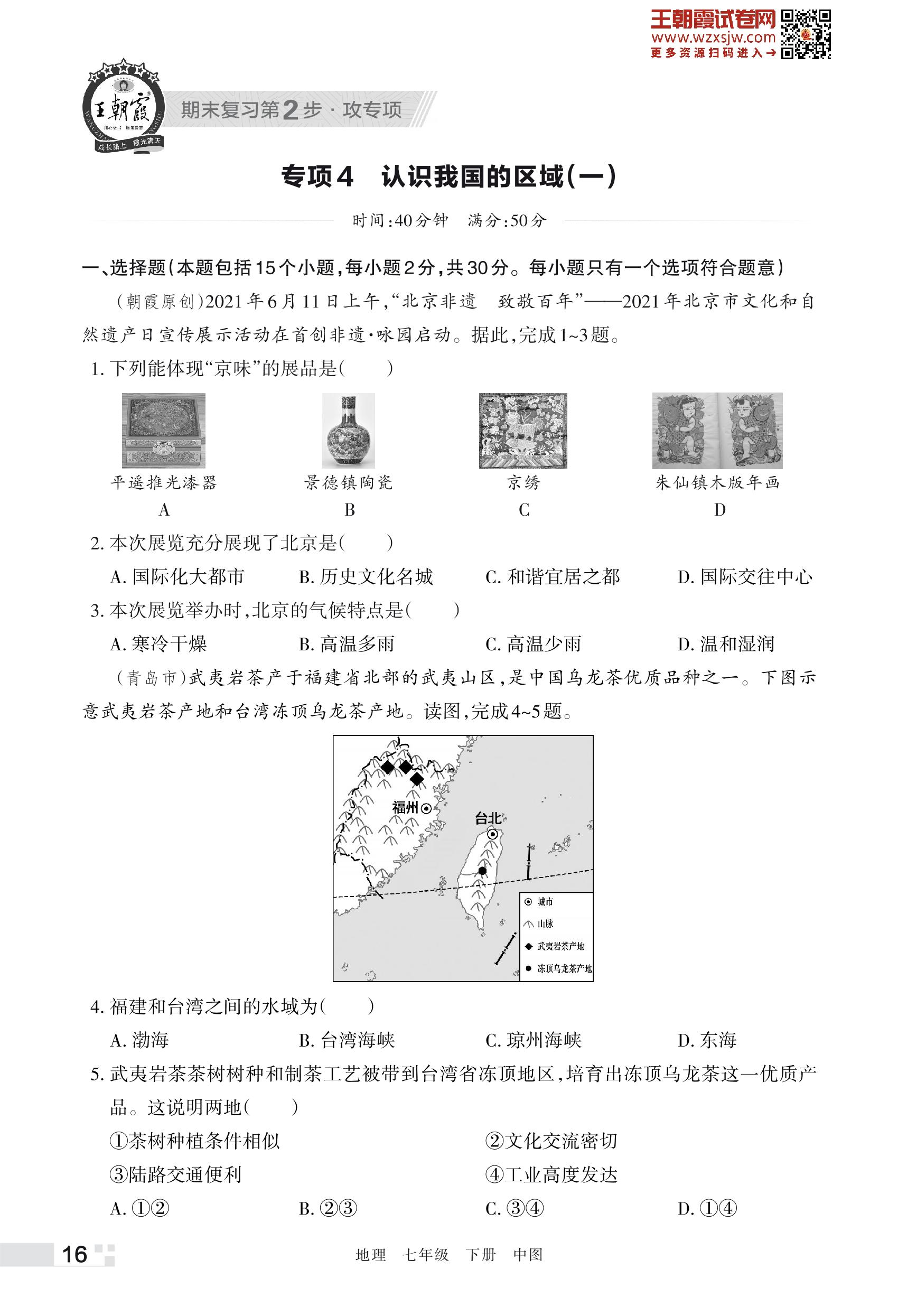 王朝霞期末专项卷——认识我国的区域(一)七年级下册地理(中图版)【4】