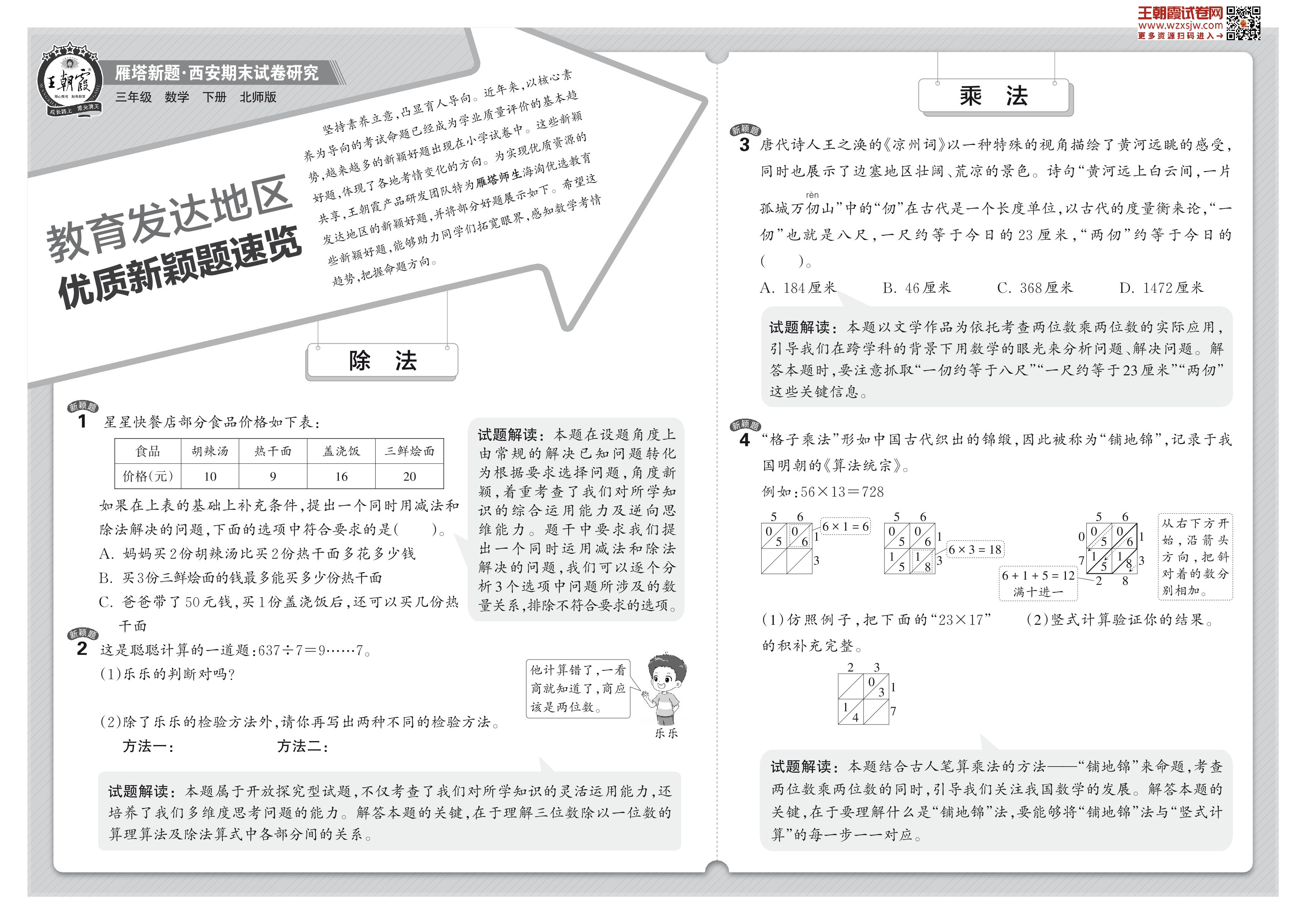 教育发达地区优质新颖题速览三年级下册数学(北师版)_R230428160558819