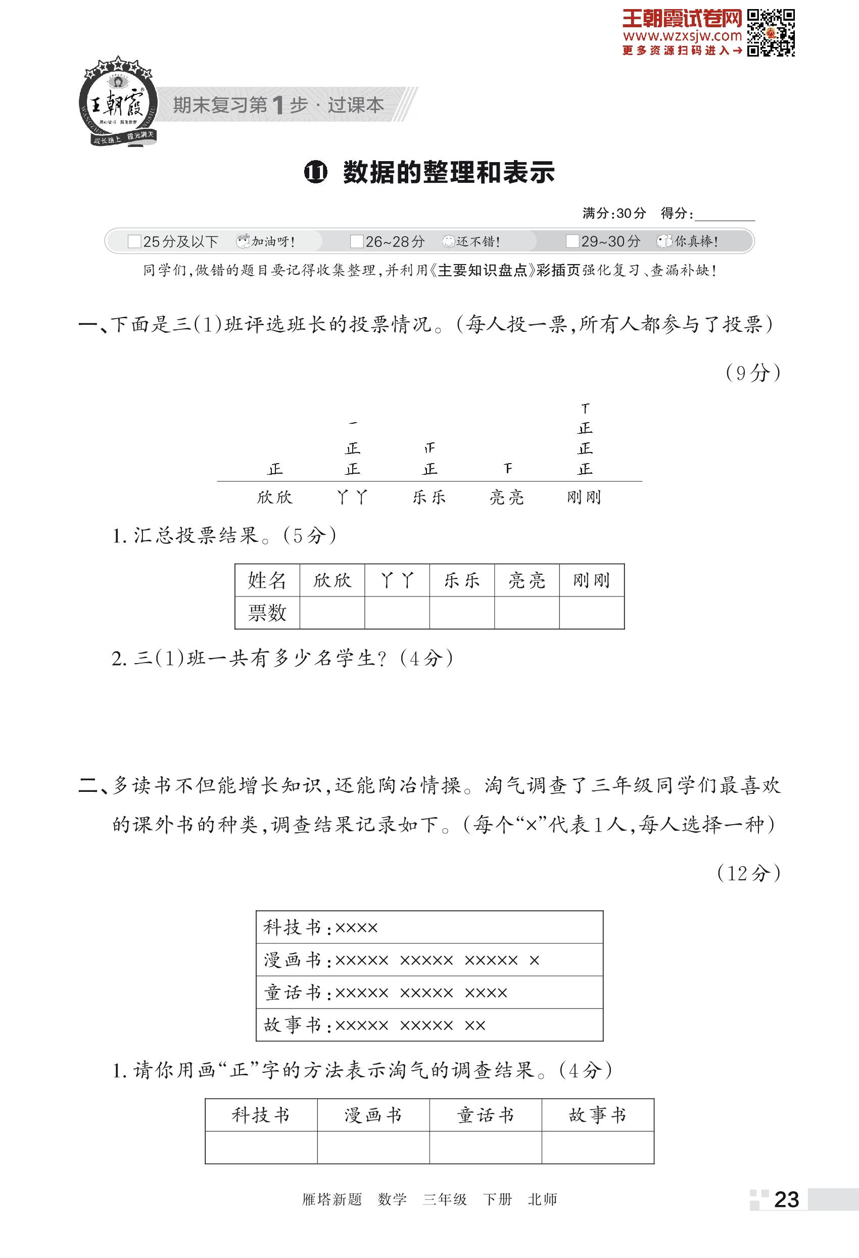 王朝霞期末过课本——11 数据的整理和表示三年级下册数学(北师版)_R230428160559318
