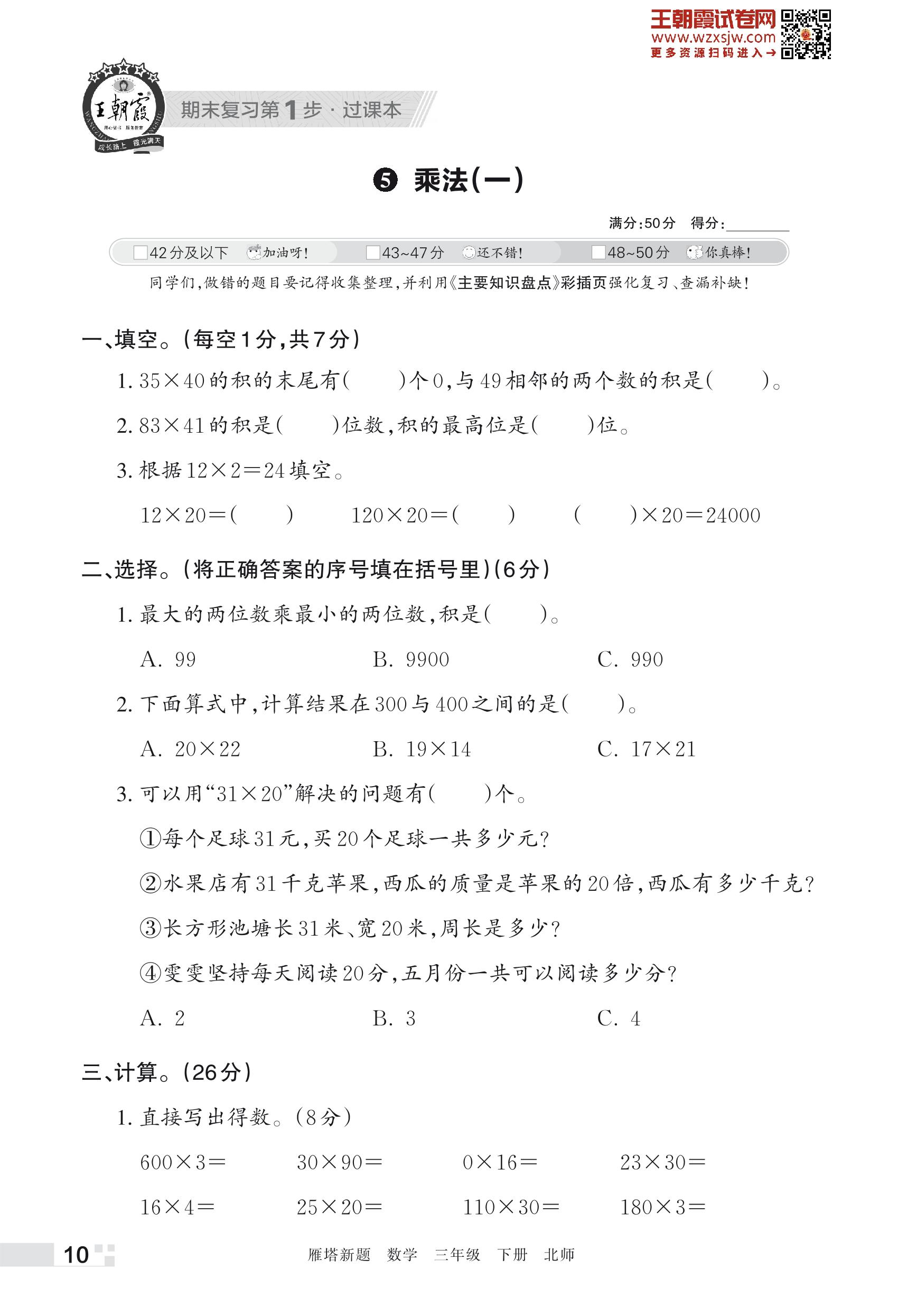 王朝霞期末过课本——5 乘法(一)三年级下册数学(北师版)_R230428160559919
