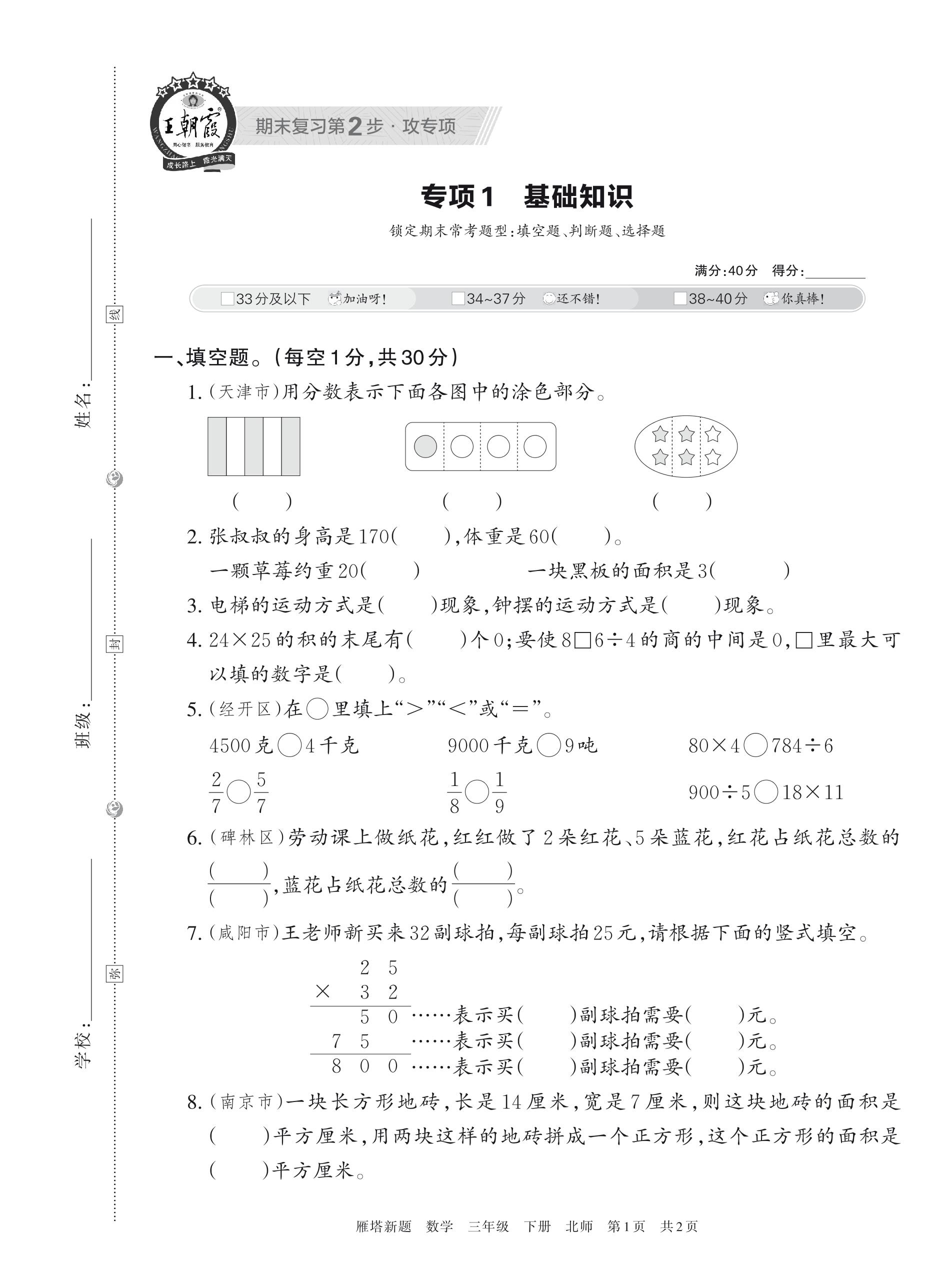 王朝霞期末专项卷——基础知识三年级下册数学(北师版)_R230428160559749【1】