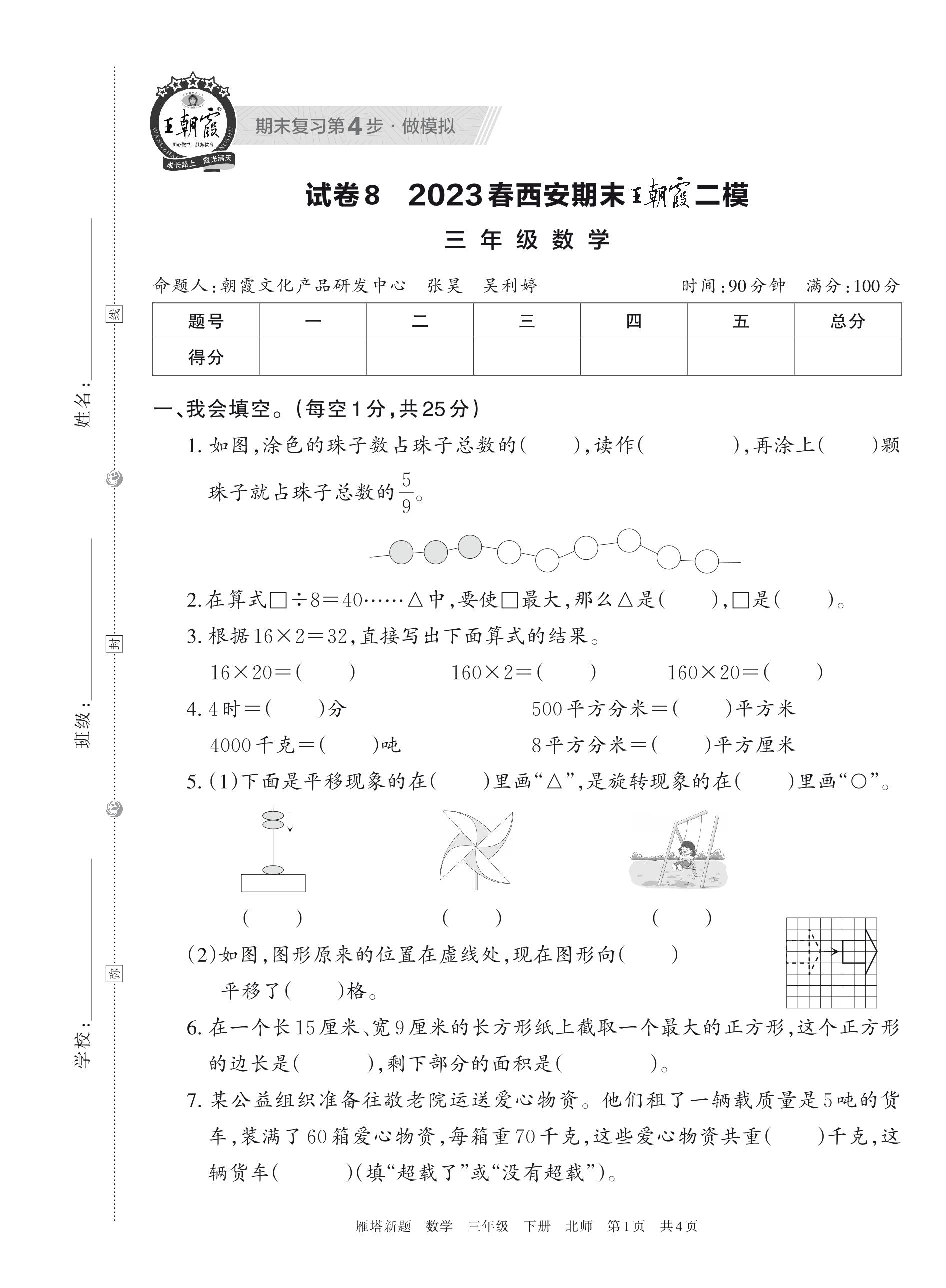 王朝霞期末模拟卷三年级下册数学(北师版)_R230428160601034【8】