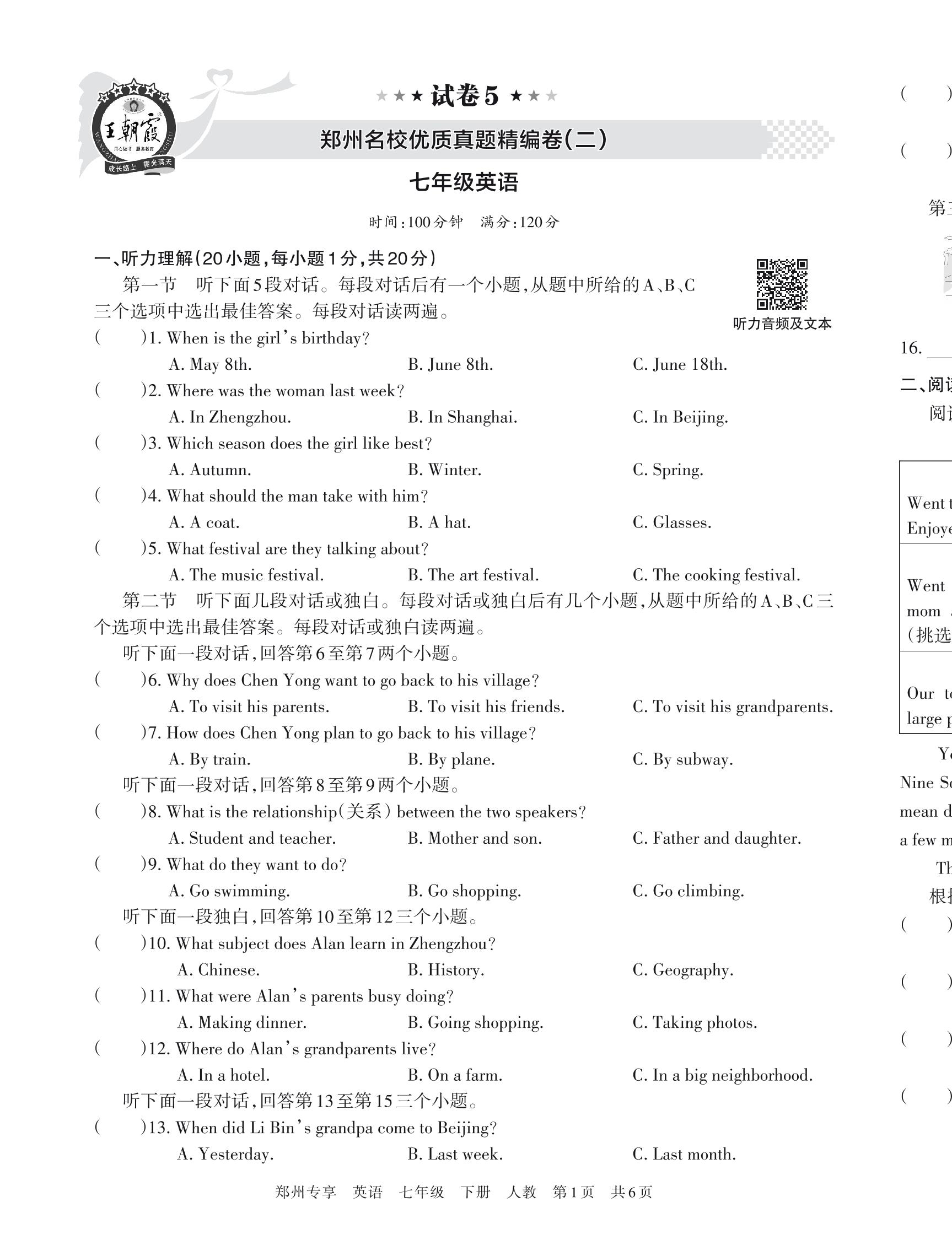郑州名校优质真题精编卷(二)七年级下册英语(人教版)【5】
