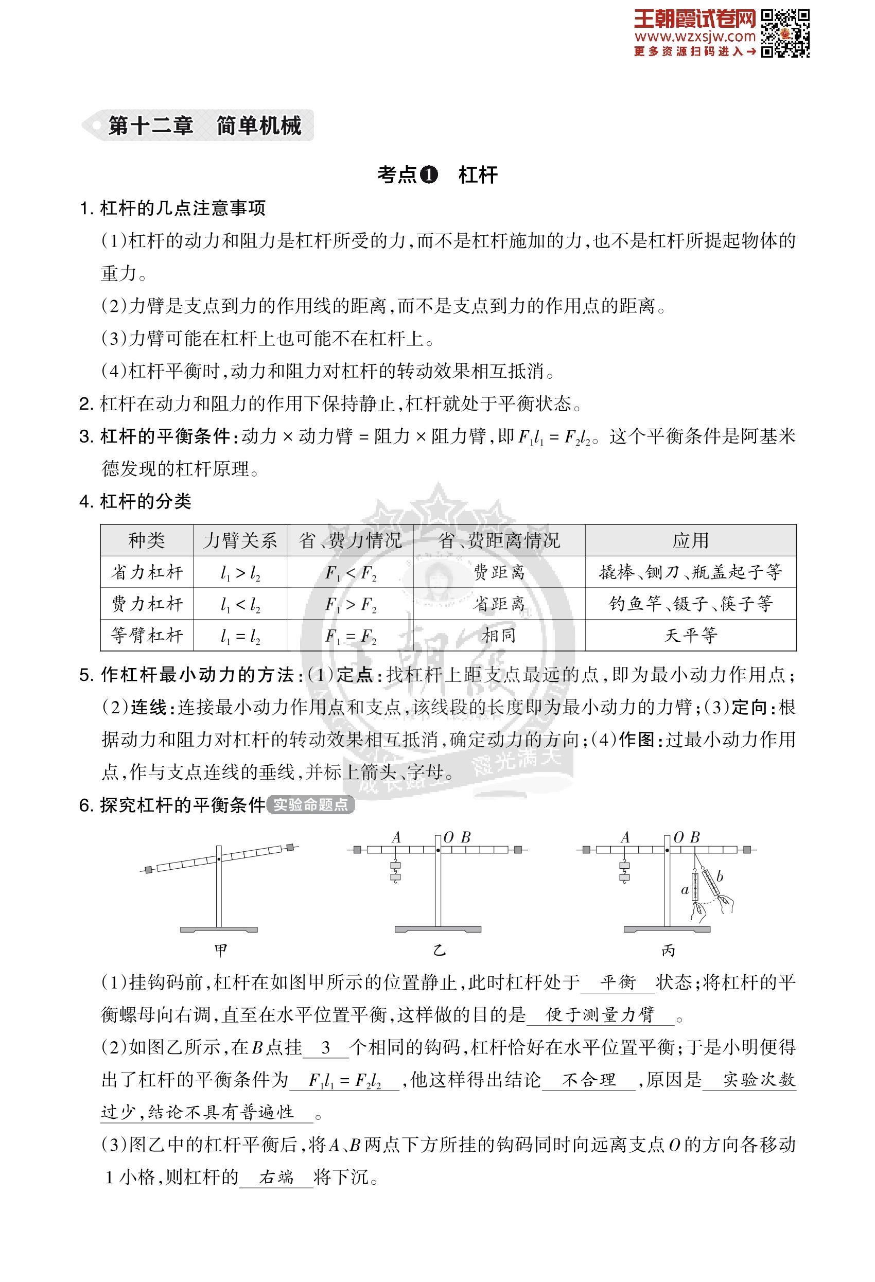 王朝霞期末知识梳理——第十二章 简单机械八年级下册物理(人教版)_R230504101841824
