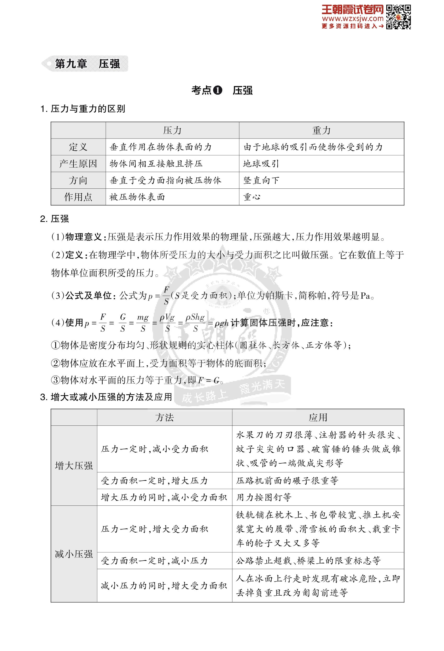 王朝霞期末知识梳理——第九章 压强八年级下册物理(人教版)_R230504101841307