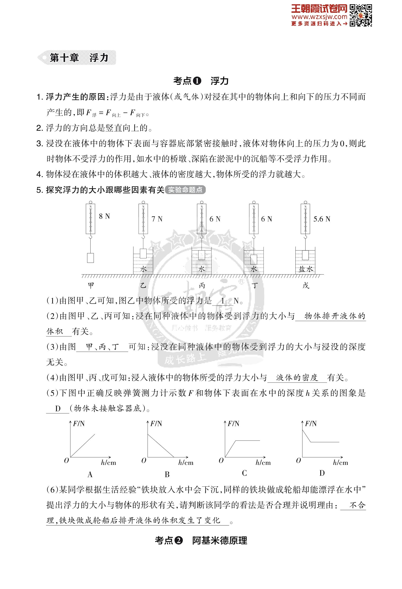王朝霞期末知识梳理——第十章 浮力八年级下册物理(人教版)_R230504101842645