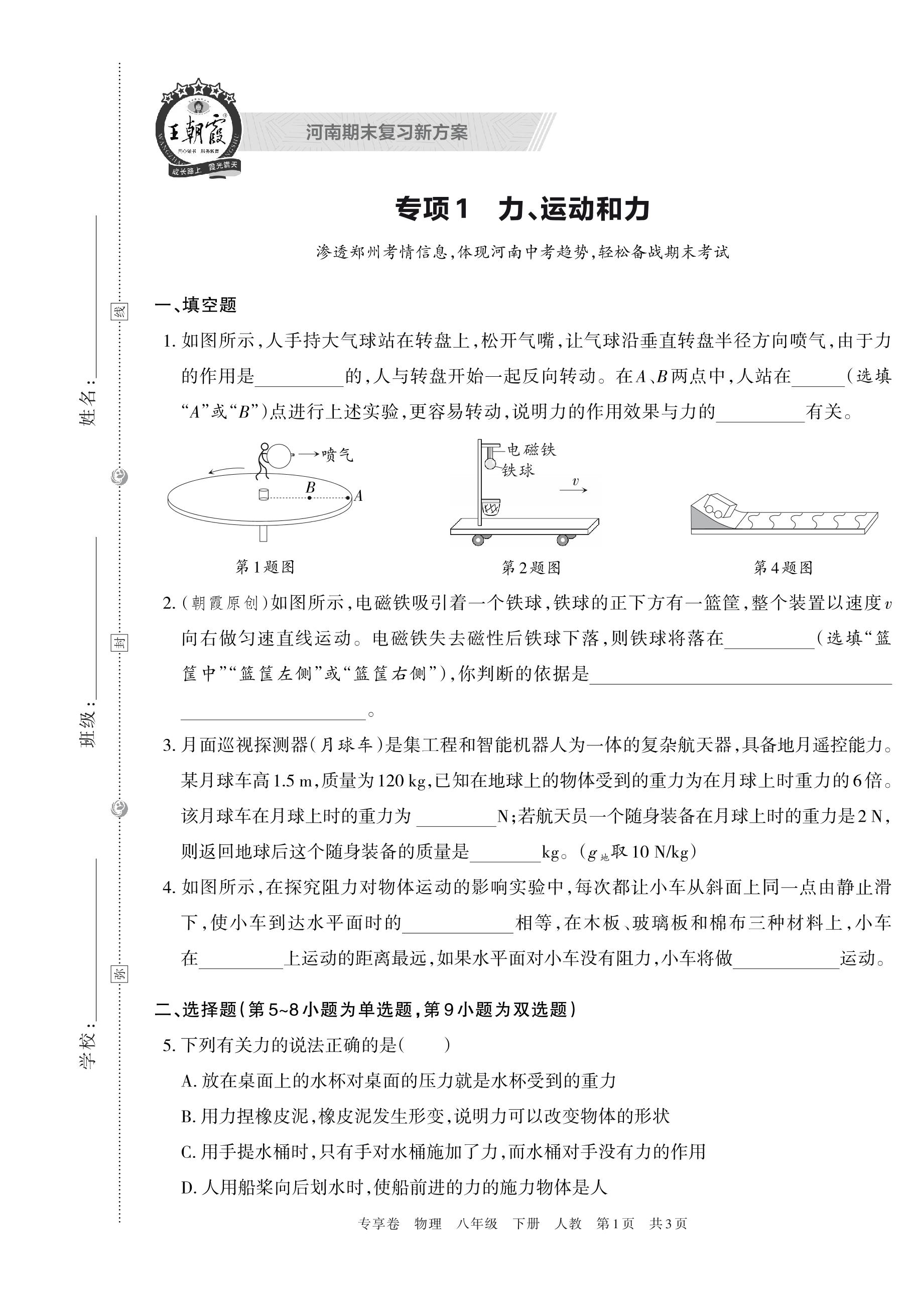 王朝霞期末专项卷——力、运动和力八年级下册物理(人教版)【1】