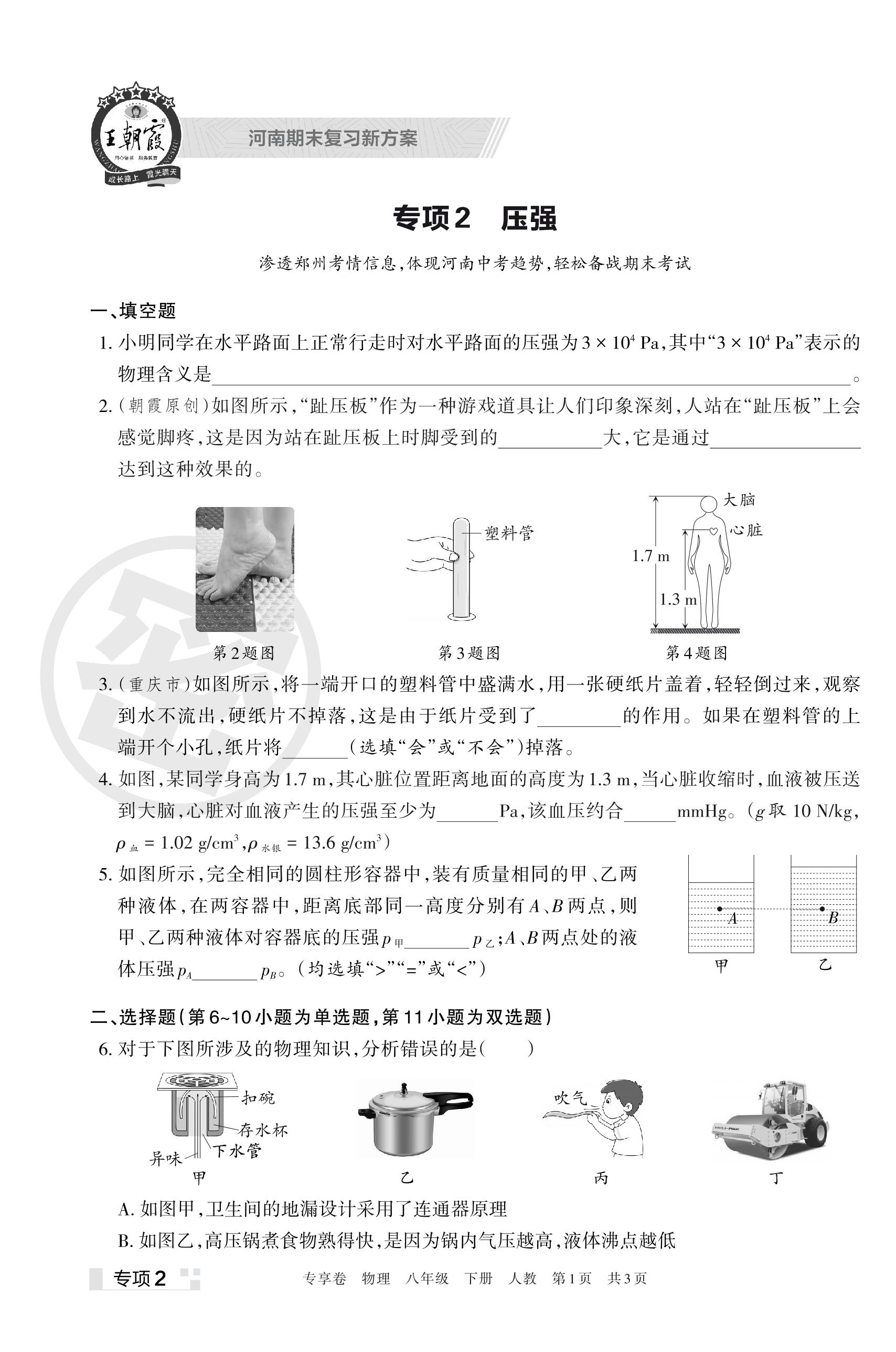 王朝霞期末专项卷——压强八年级下册物理(人教版)【2】