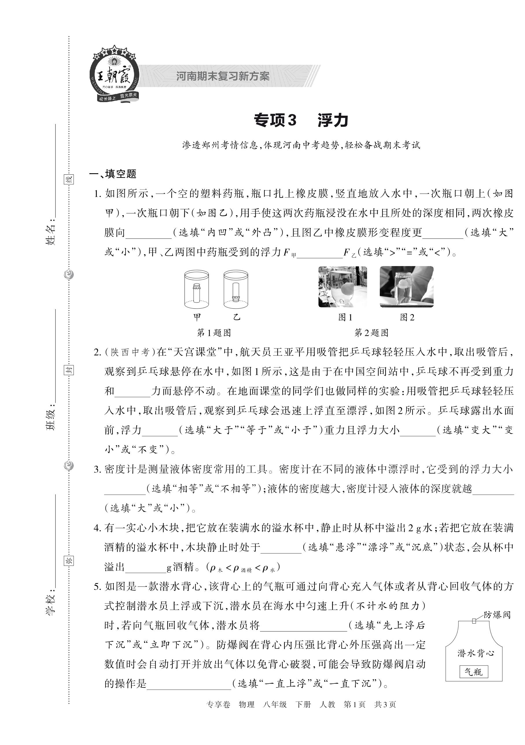 王朝霞期末专项卷——浮力八年级下册物理(人教版)【3】