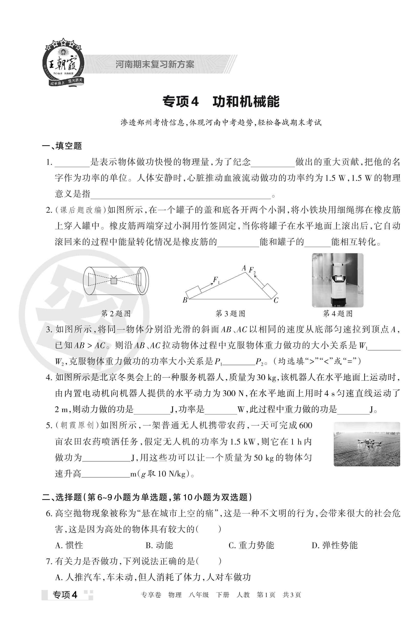 王朝霞期末专项卷——功和机械能八年级下册物理(人教版)【4】