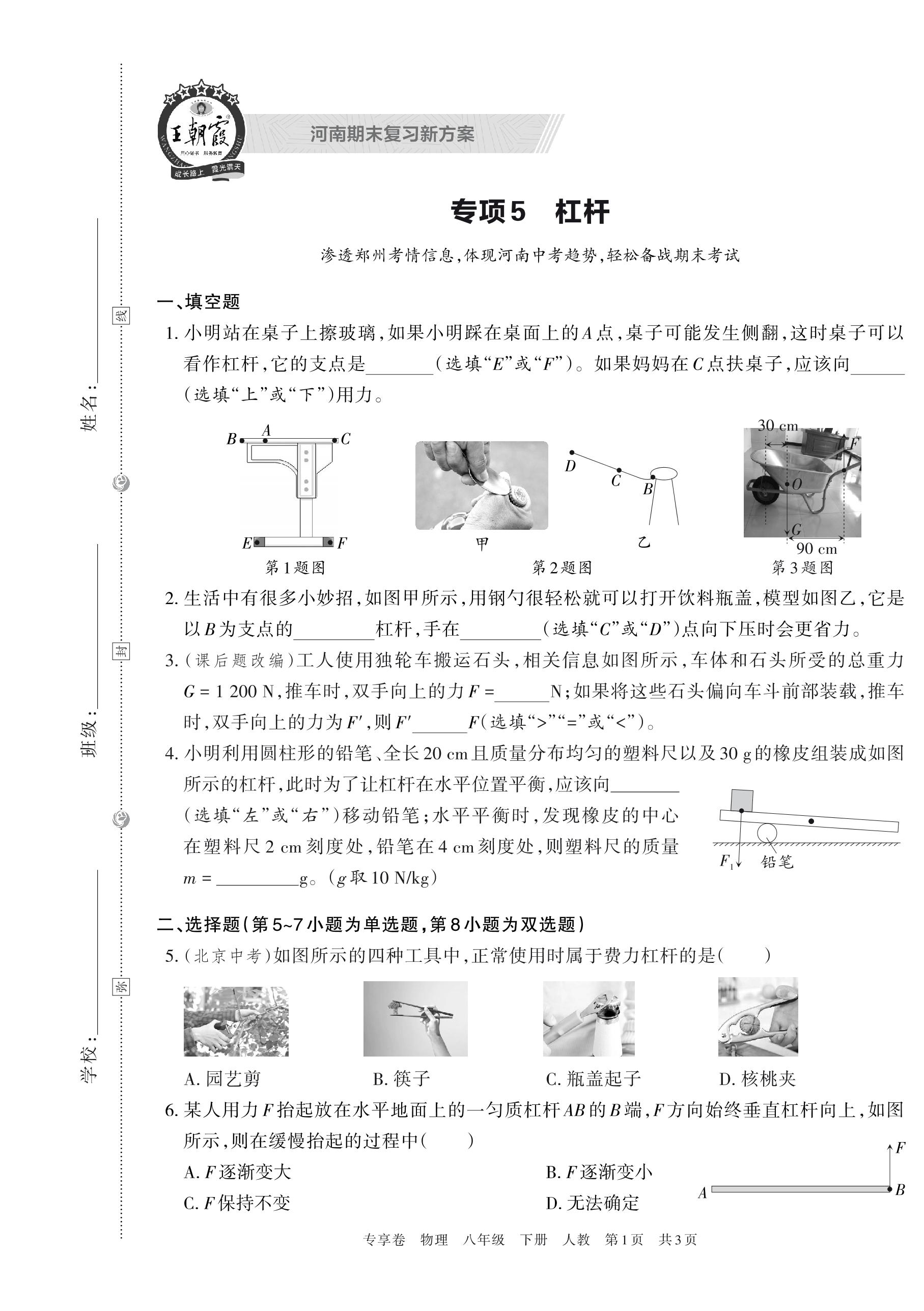 王朝霞期末专项卷——杠杆八年级下册物理(人教版)【5】