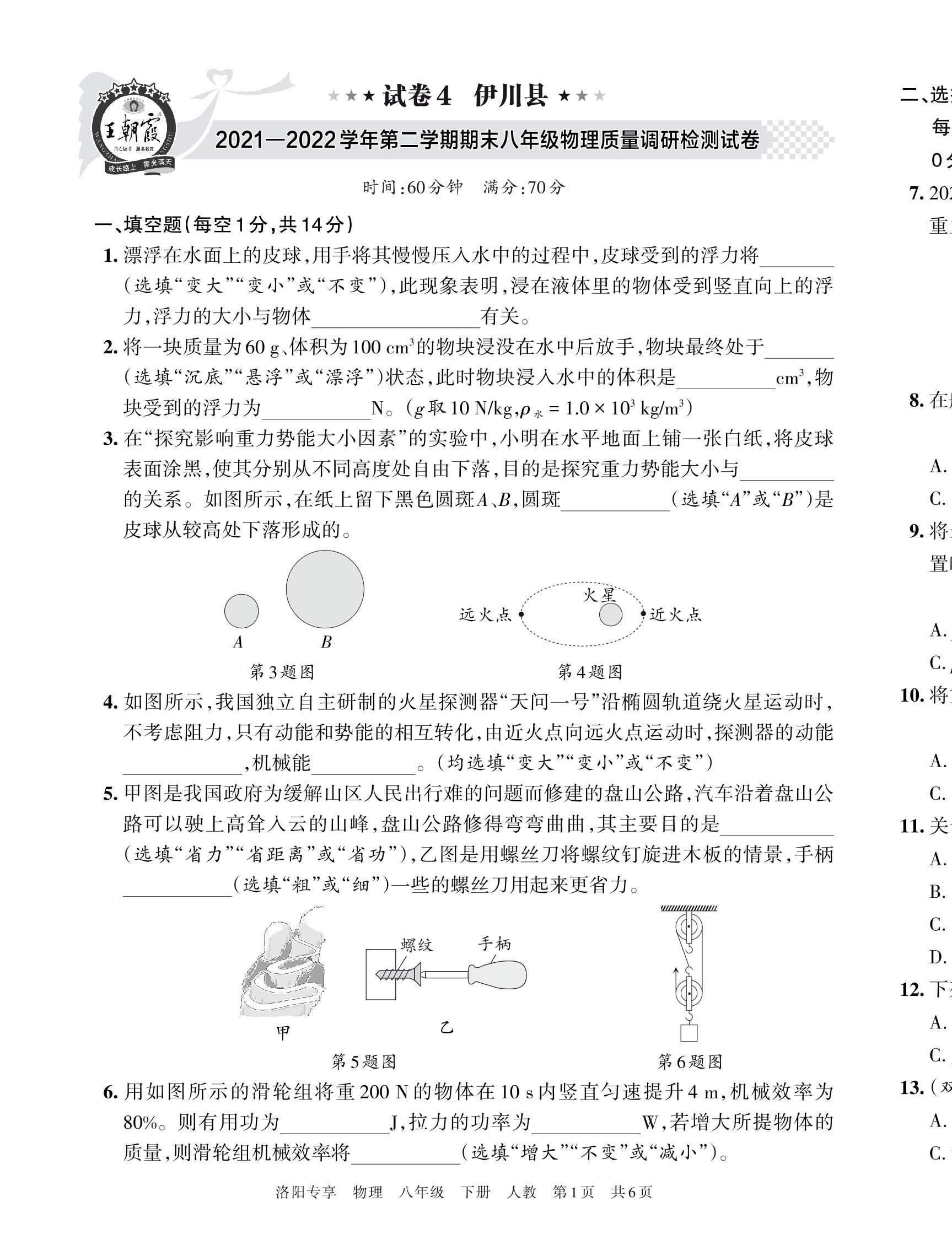 伊川县2021—2022学年第二学期期末八年级物理质量调研检测试卷(人教版)【4】