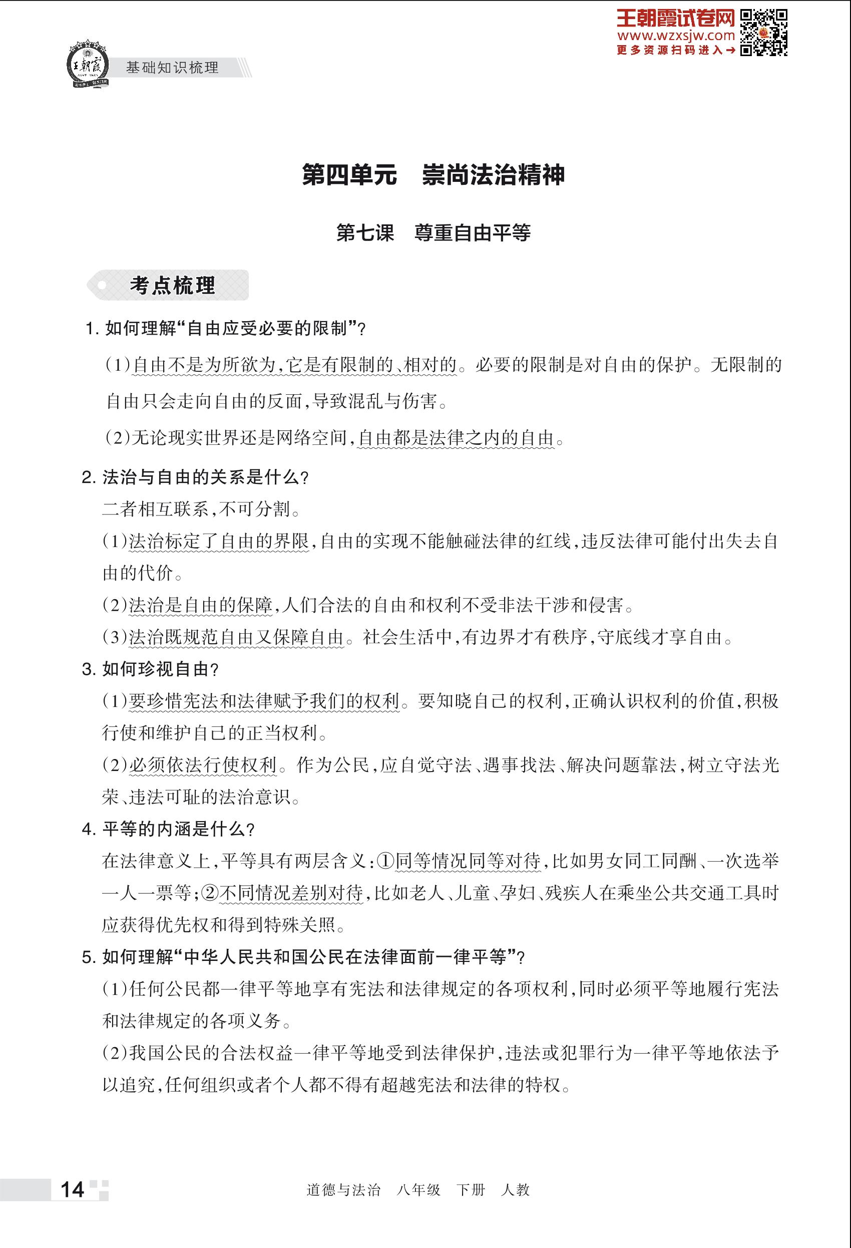 王朝霞期末知识梳理——第四单元 崇尚法治精神八年级下册道德与法治(人教版)_R230504104048642