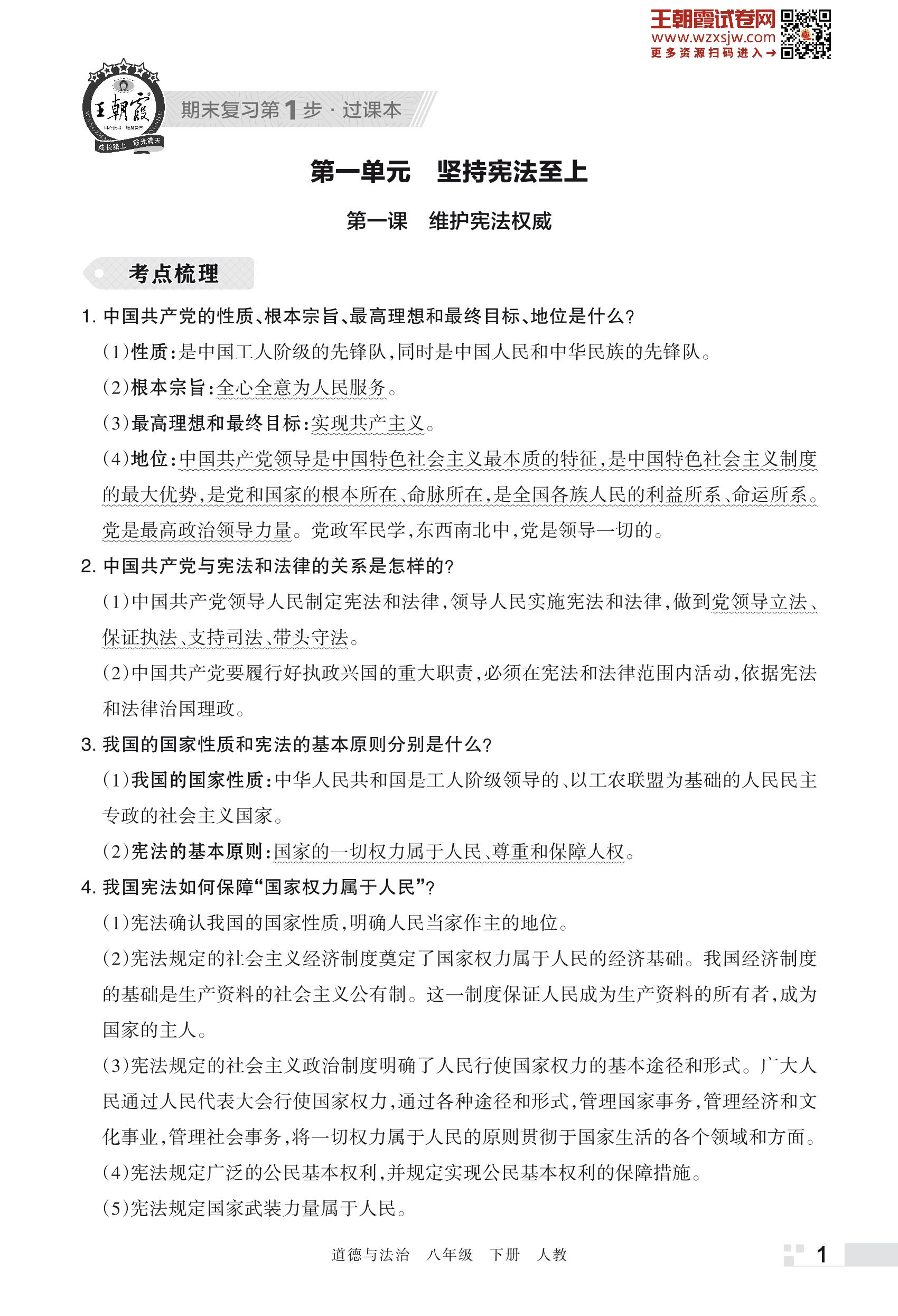王朝霞期末知识梳理——第一单元 坚持宪法至上八年级下册道德与法治(人教版)_R230504104048528