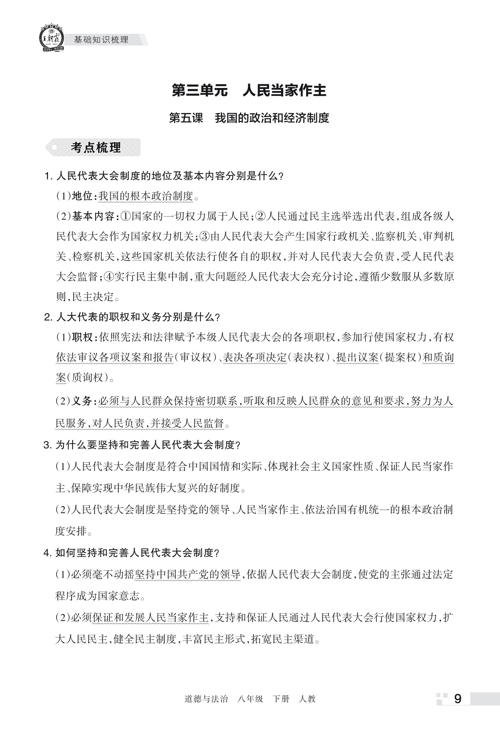 王朝霞期末知识梳理——第三单元 人民当家作主八年级下册道德与法治(人教版)_R230504104048281