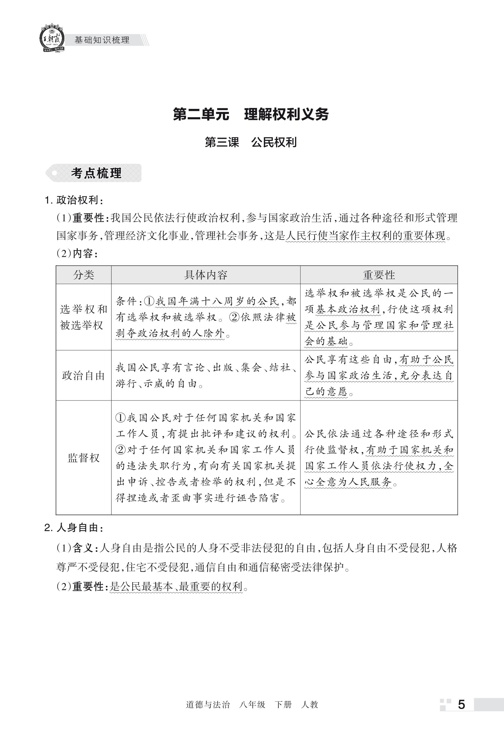 王朝霞期末知识梳理——第二单元 理解权利义务八年级下册道德与法治(人教版)_R230504104048488