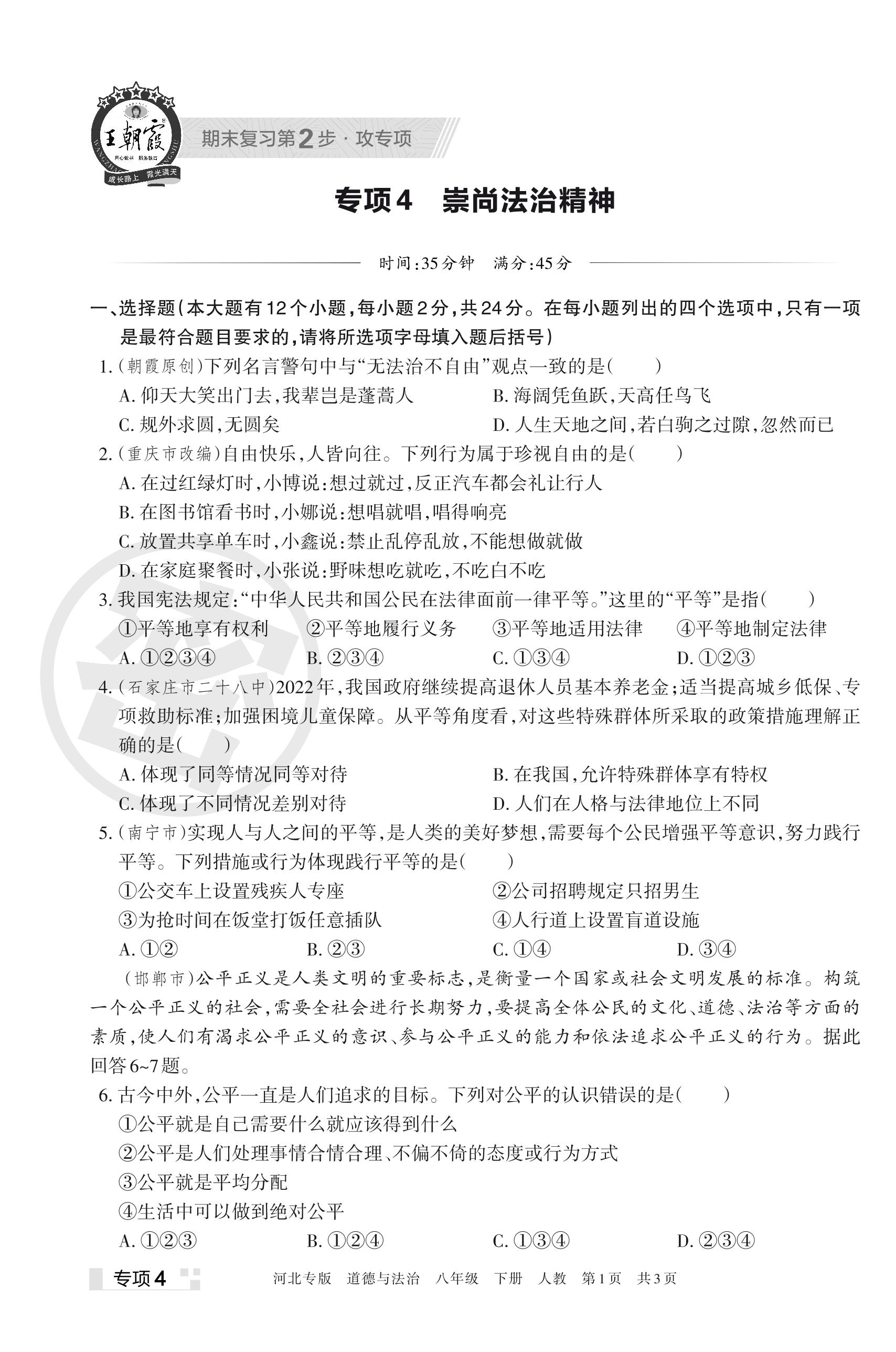 王朝霞期末专项卷——崇尚法治精神八年级下册道德与法治(人教版)_R230504104049243【4】