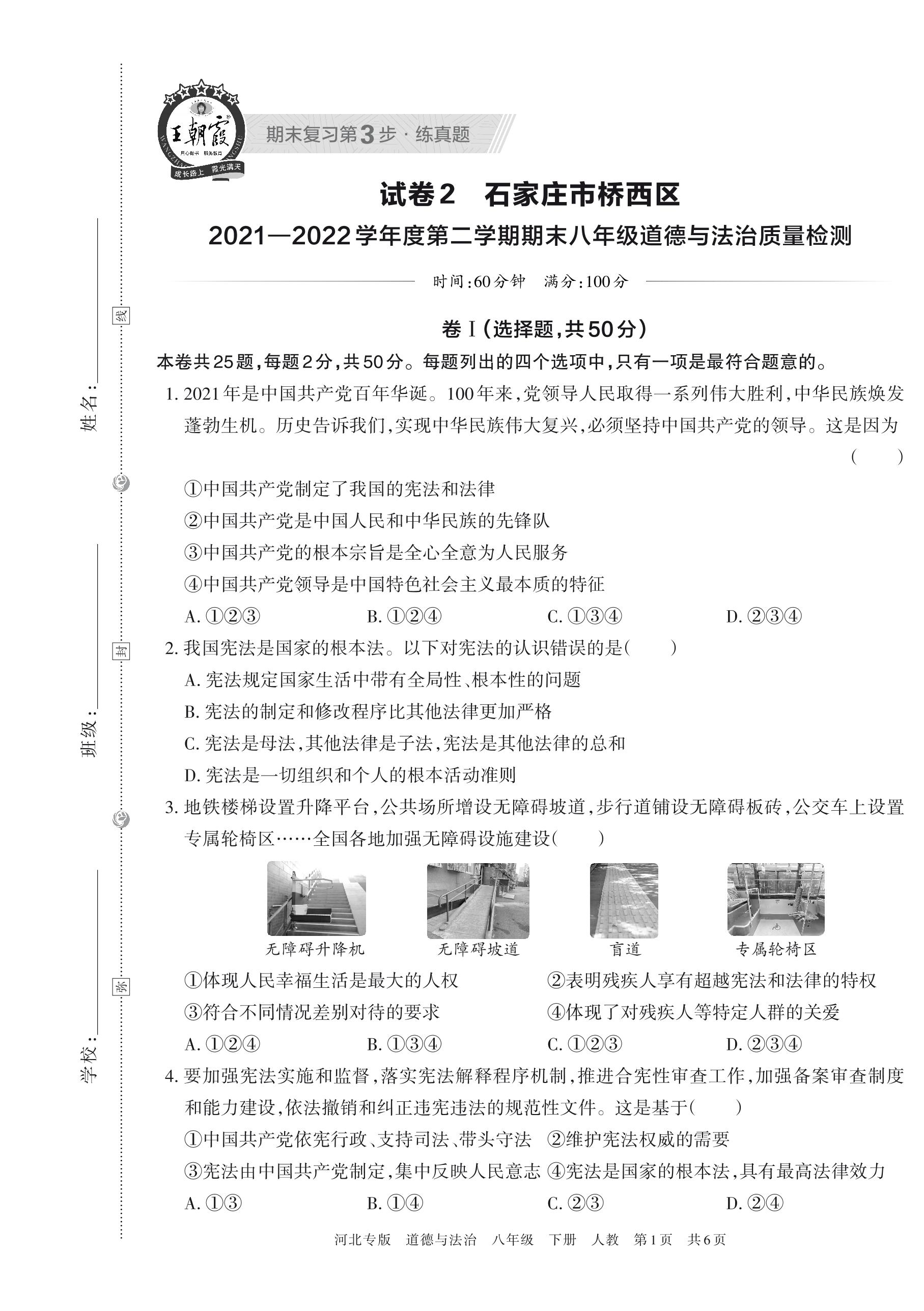 石家庄市桥西区2021—2022学年度第二学期期末八年级道德与法治质量检测(人教版)【2】