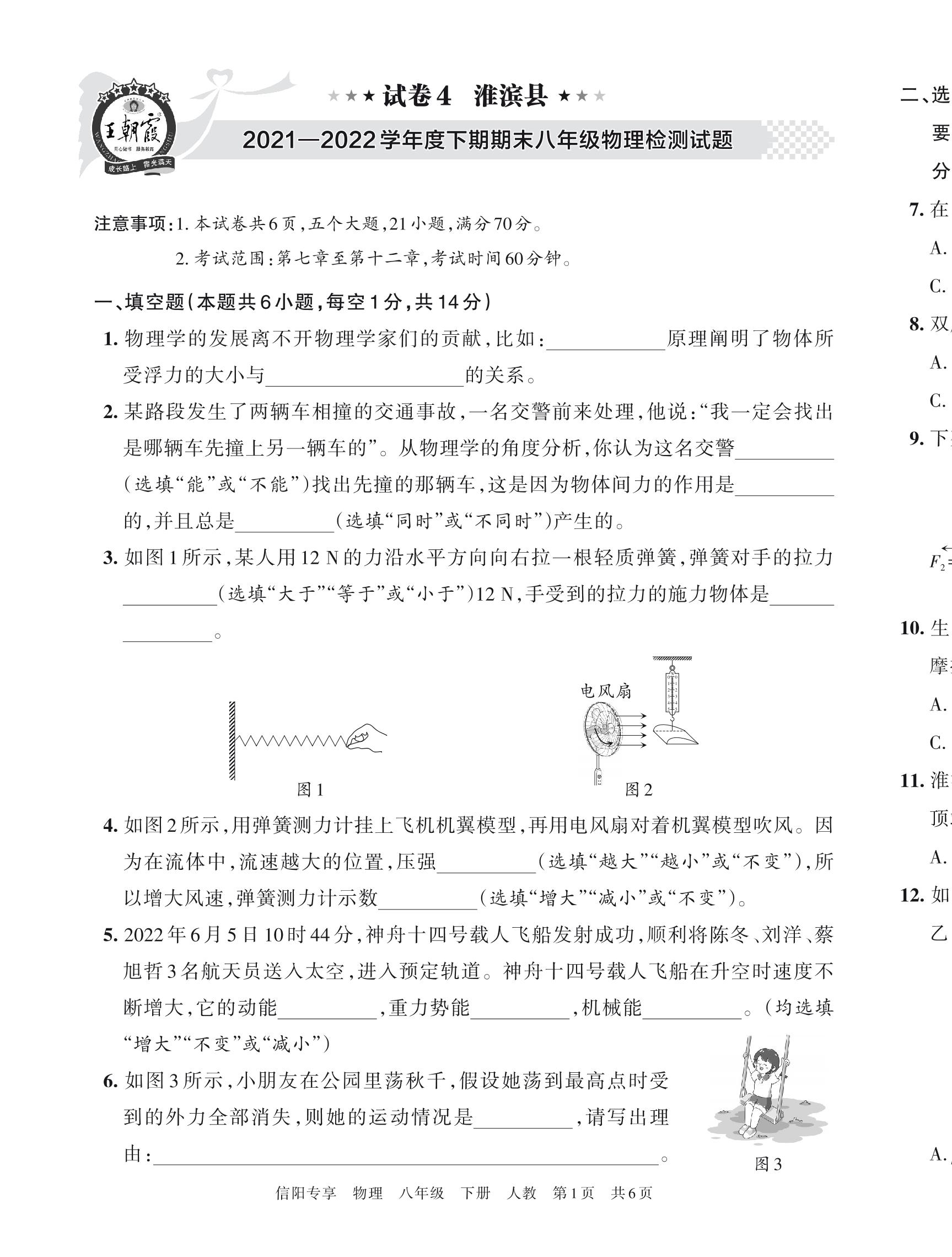 淮滨县2021—2022学年度下期期末八年级物理检测试题(人教版)【4】