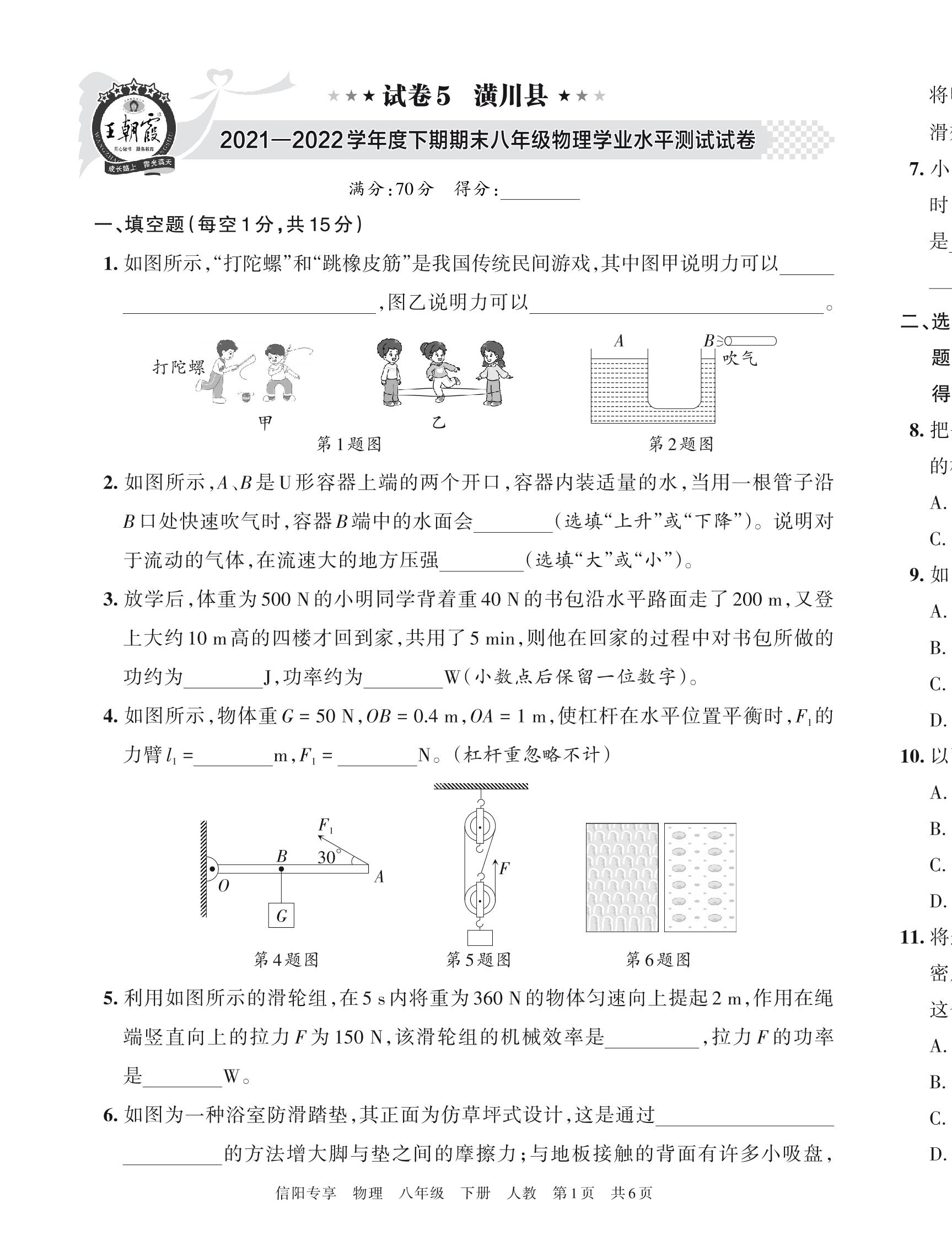 潢川县2021—2022学年度下期期末八年级物理学业水平测试试卷(人教版)【5】