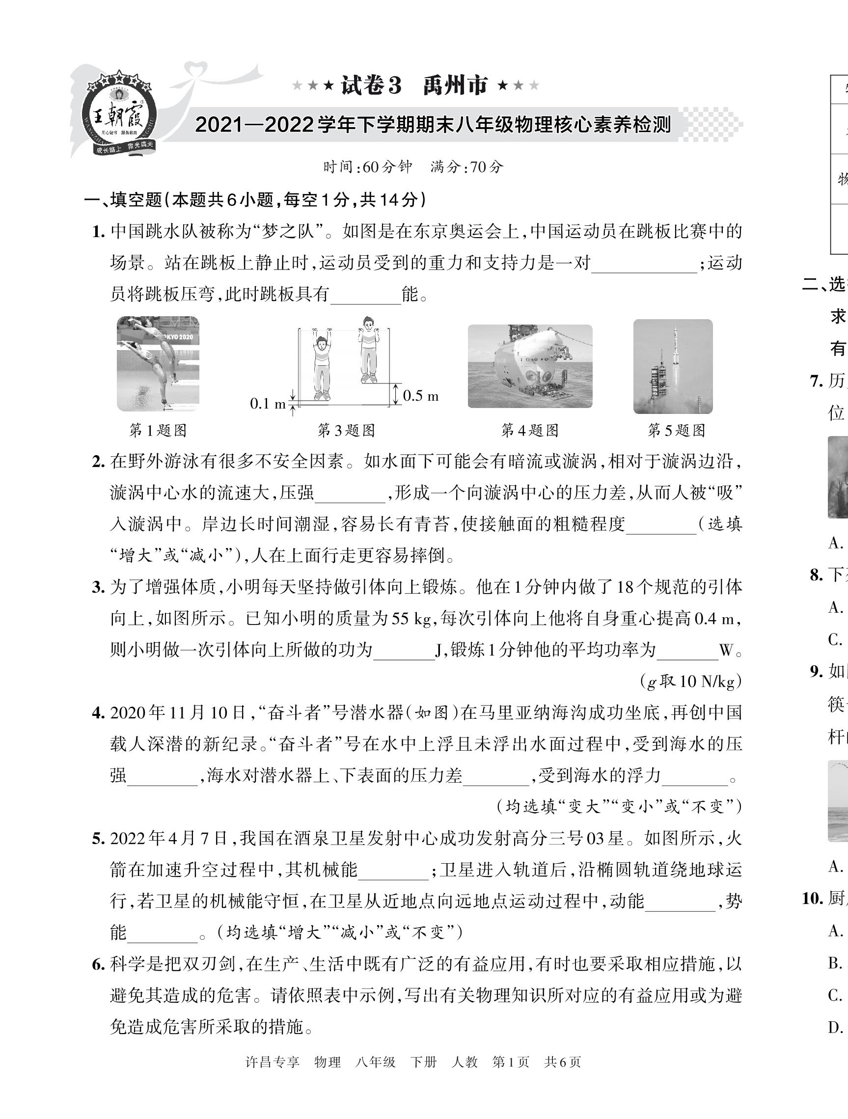 禹州市2021—2022学年下学期期末八年级物理核心素养检测(人教版)【3】