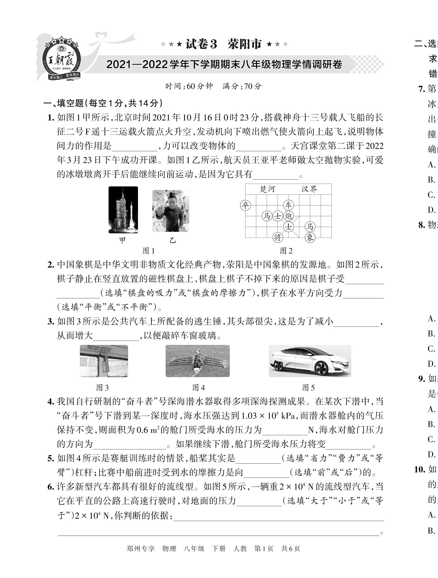 荥阳市2021—2022学年下学期期末八年级物理学情调研卷(人教版)【3】
