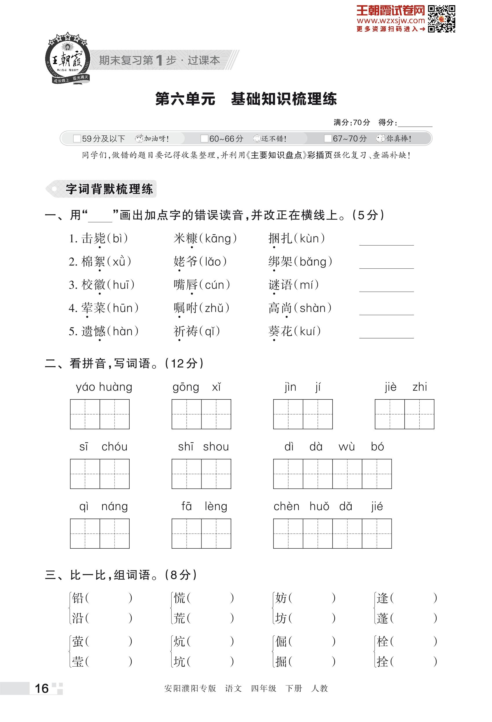 王朝霞期末过课本——第六单元 基础知识梳理练四年级下册语文(人教版)_R230504133904400
