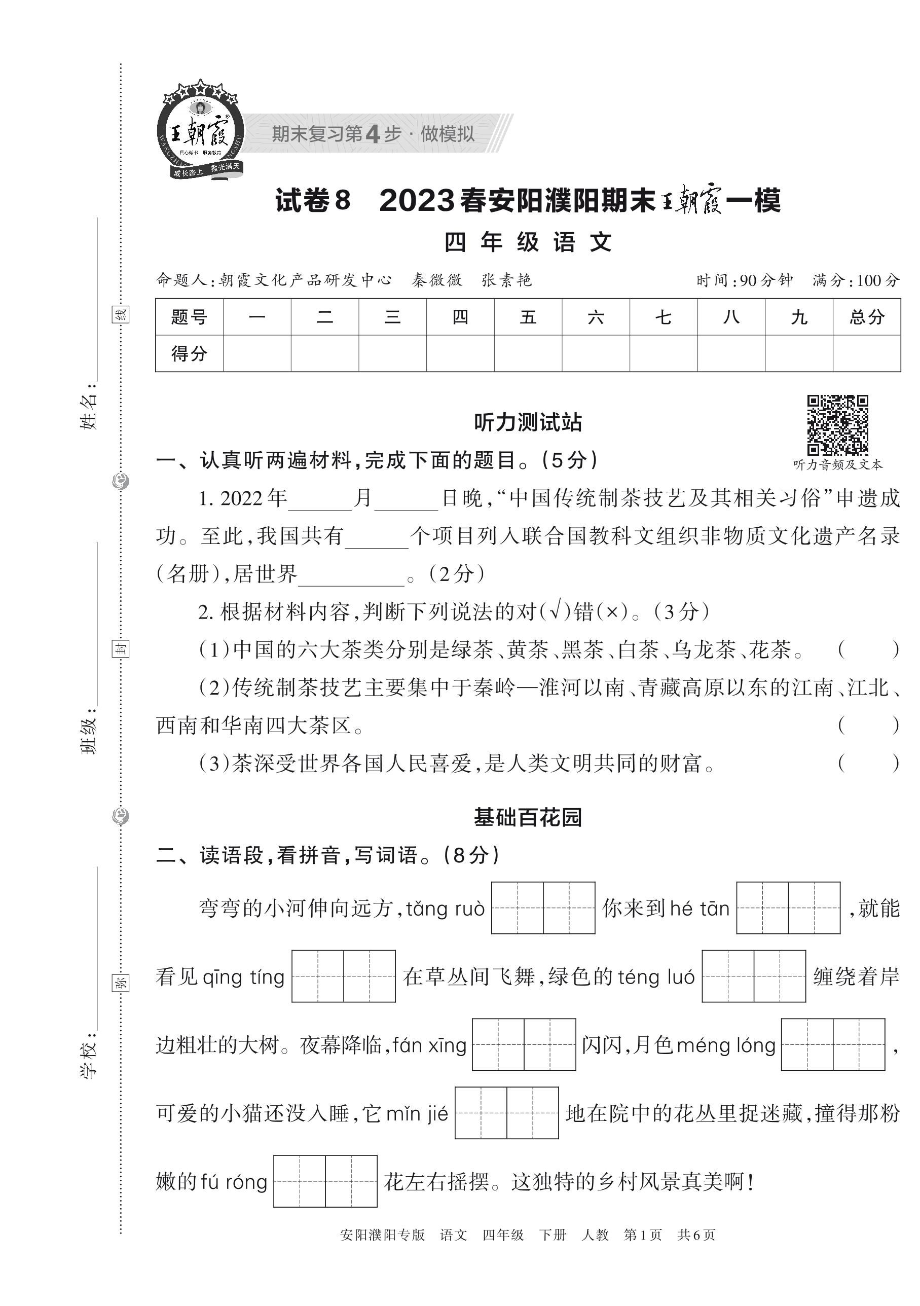 王朝霞期末模拟卷四年级下册语文(人教版)_R230504133906953【8】