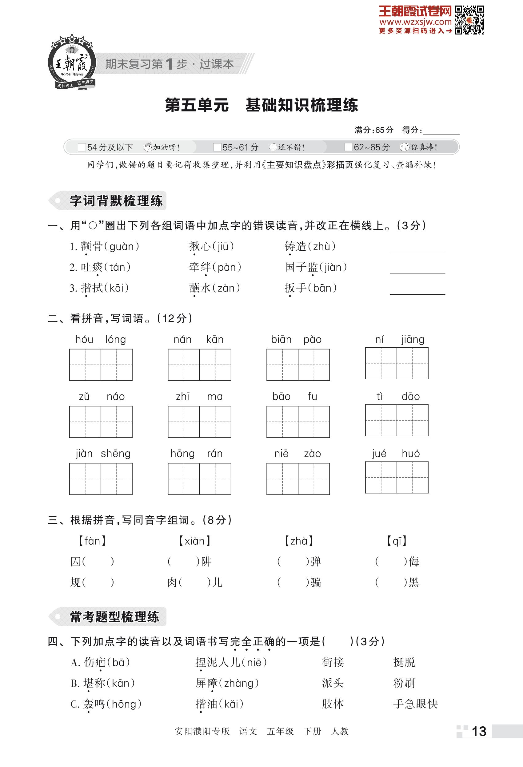 王朝霞期末过课本——第五单元 基础知识梳理练五年级下册语文(人教版)_R230504134555609