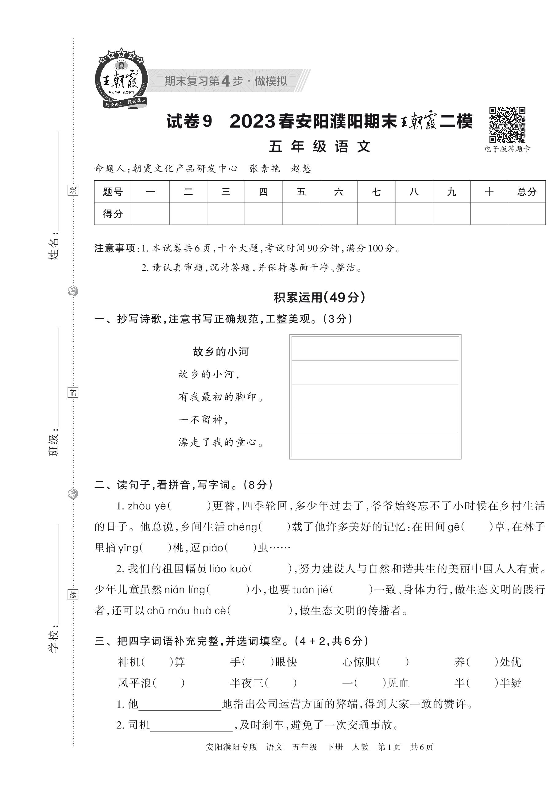 王朝霞期末模拟卷五年级下册语文(人教版)_R230504134557856【9】