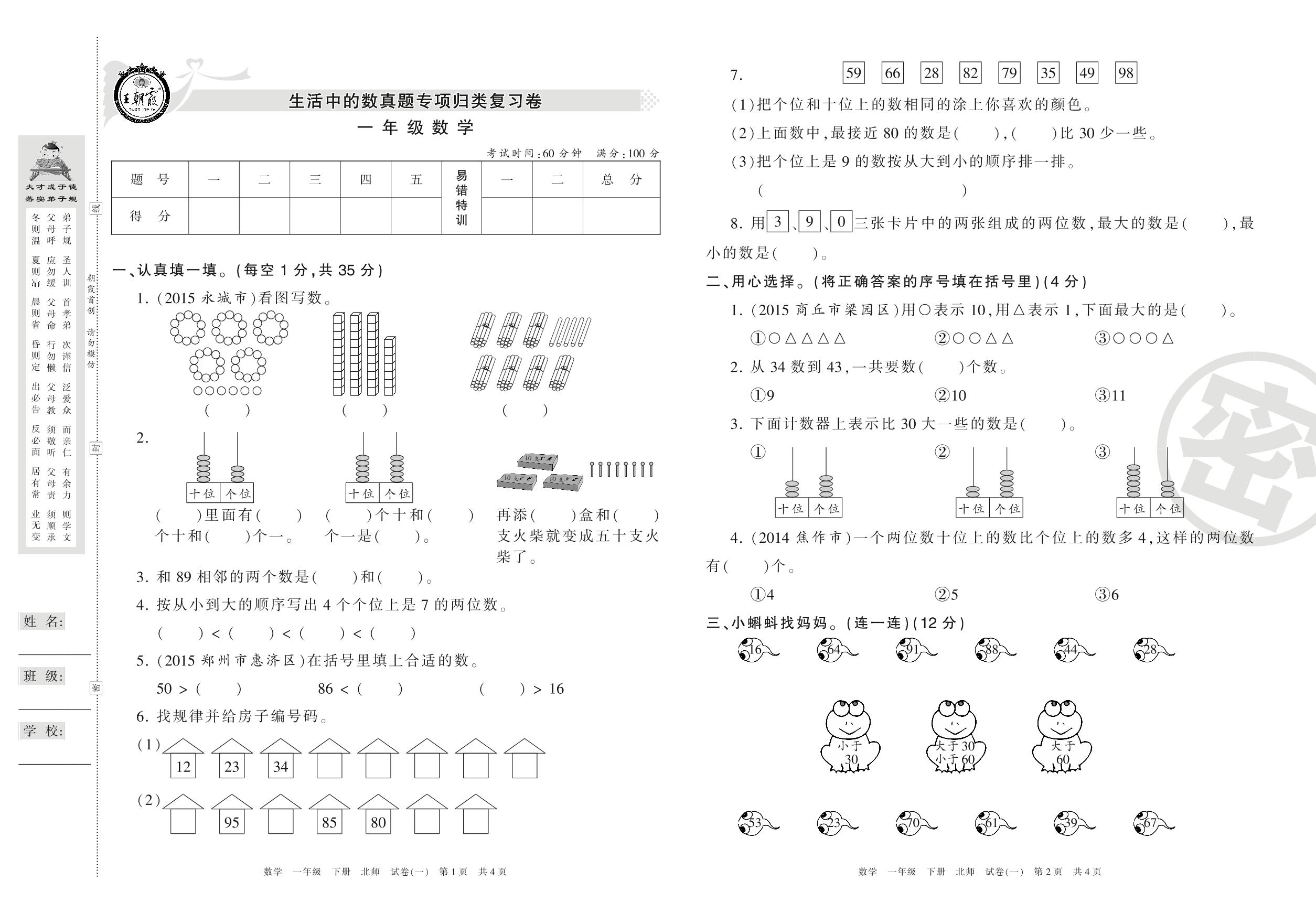 王朝霞期末专项卷一年级下册数学(北师版)_R210802222237【1】