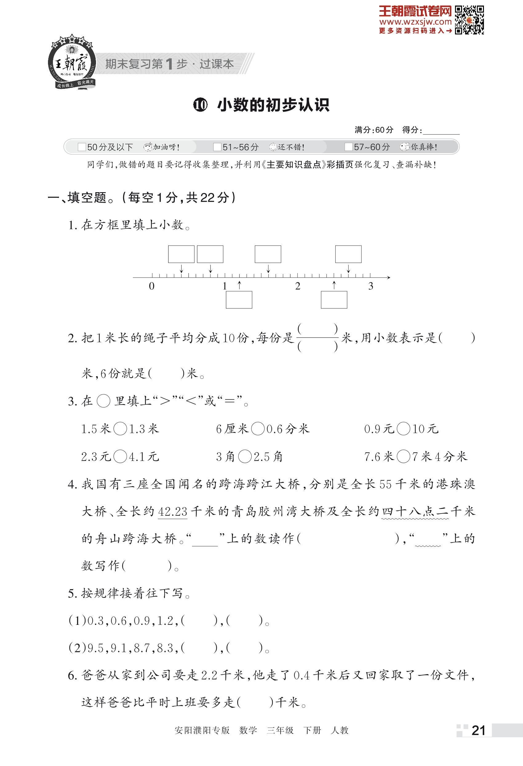 王朝霞期末过课本——10 小数的初步认识三年级下册数学(人教版)_R230504135741627