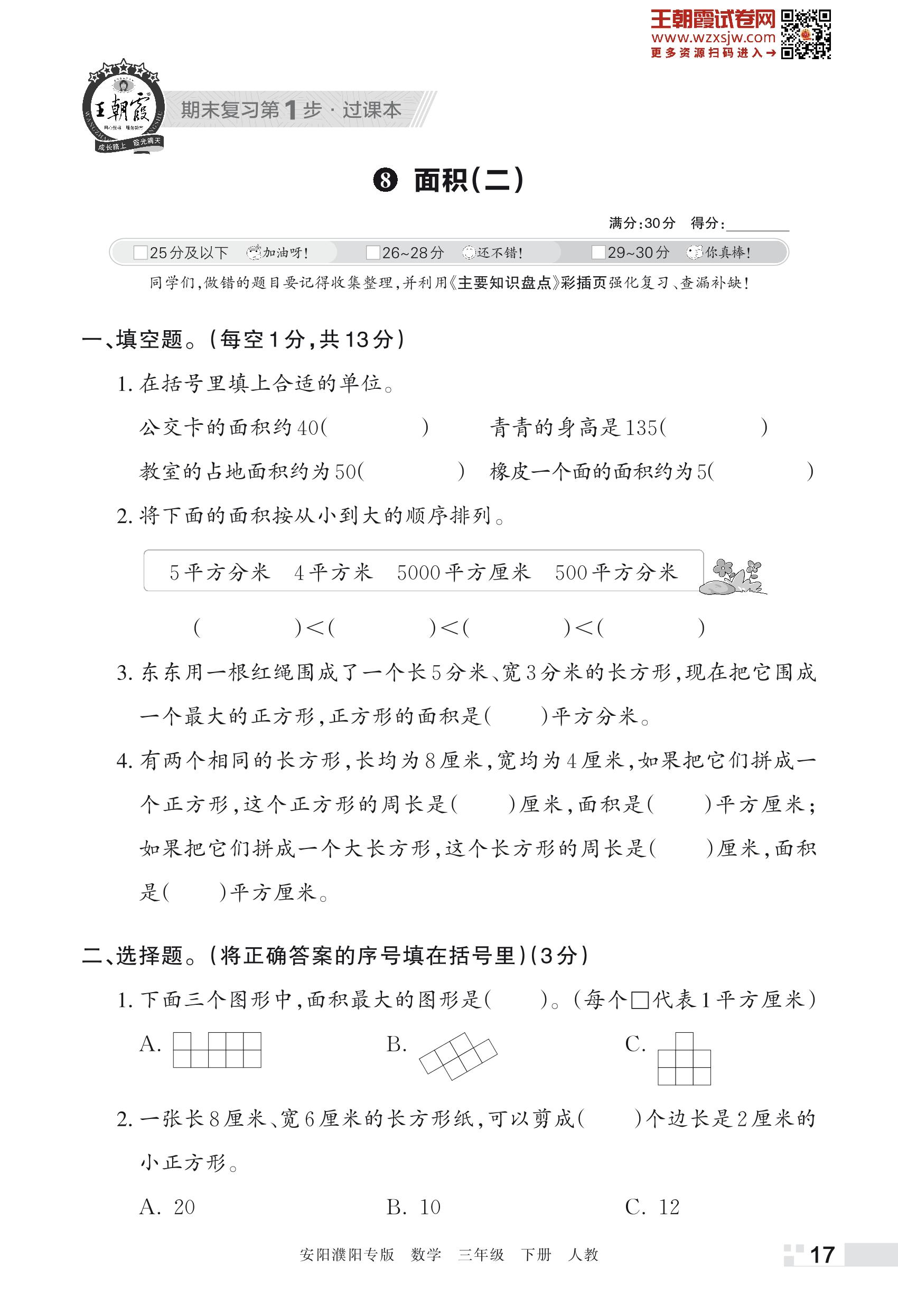 王朝霞期末过课本——8 面积(二)三年级下册数学(人教版)_R230504135742040