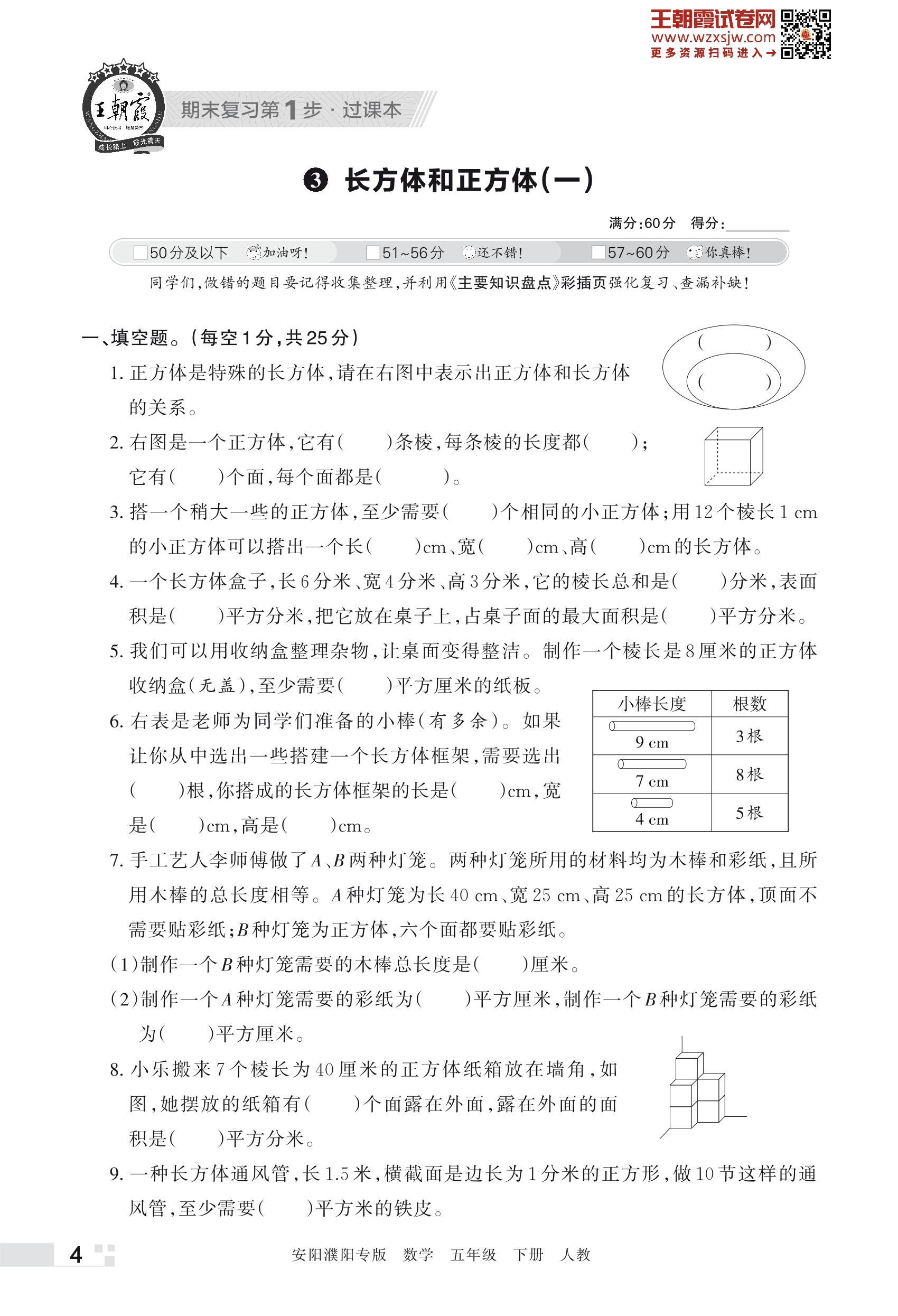 王朝霞期末过课本——3 长方体和正方体(一)五年级下册数学(人教版)_R230504141038647