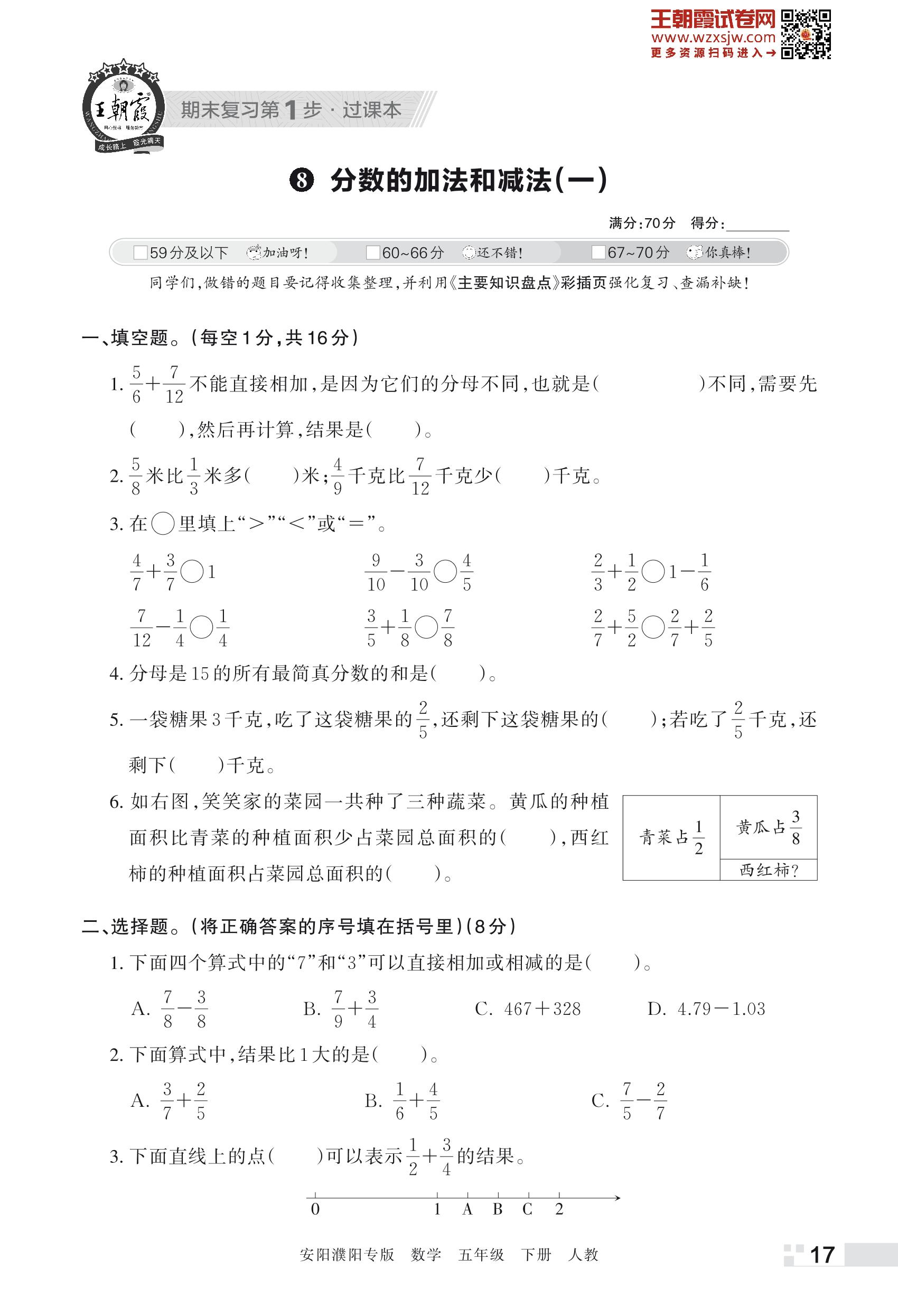 王朝霞期末过课本——8 分数的加法和减法(一)五年级下册数学(人教版)_R230504141039605