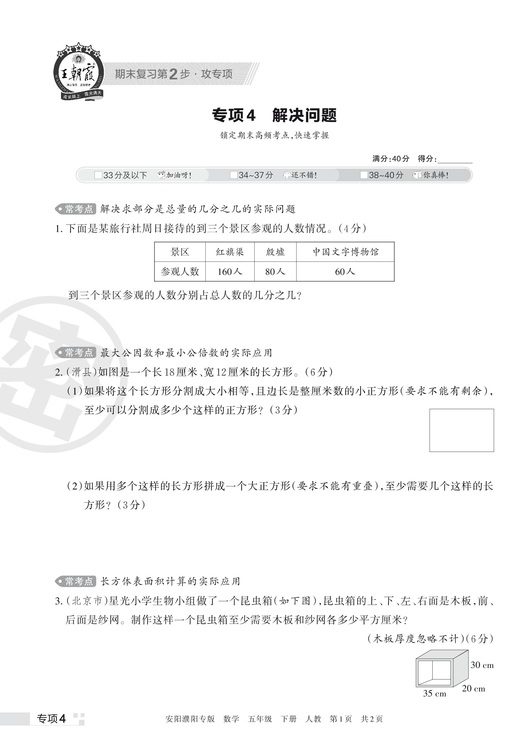 王朝霞期末专项卷——解决问题五年级下册数学(人教版)_R230504141040164【4】