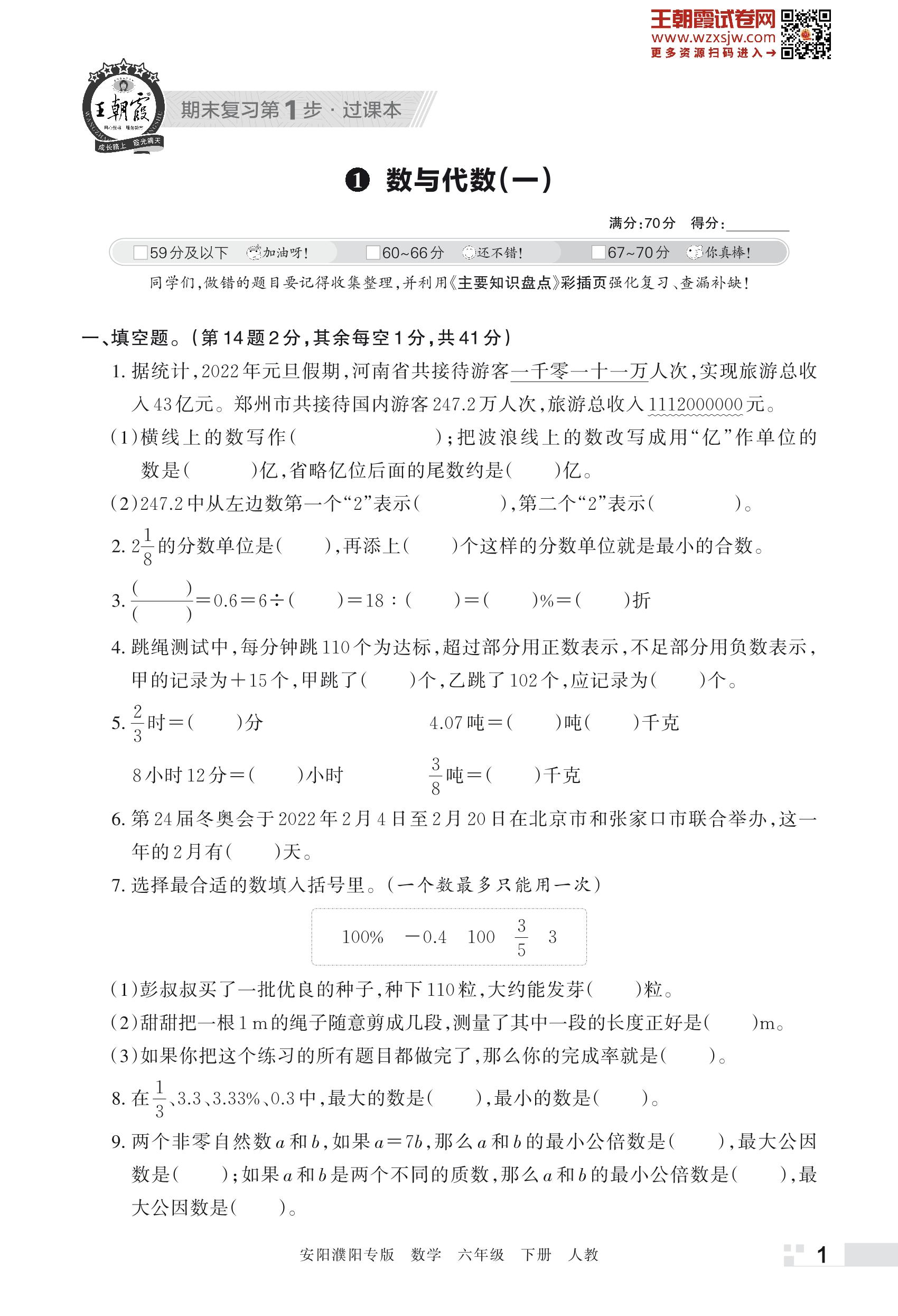 王朝霞期末过课本——1 数与代数(一)六年级下册数学(人教版)_R230504141716546