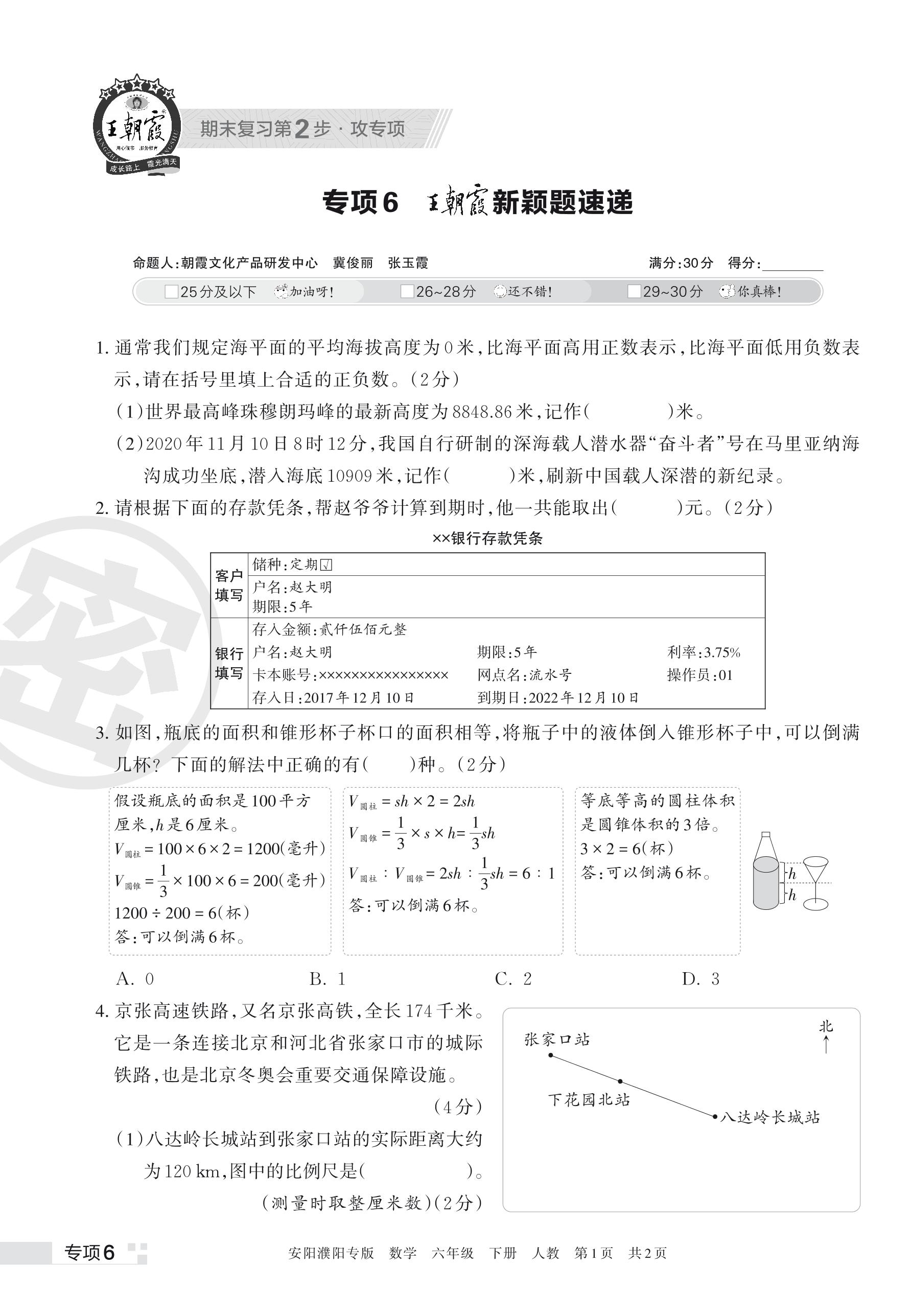 王朝霞期末专项卷——新颖题速递六年级下册数学(人教版)【6】