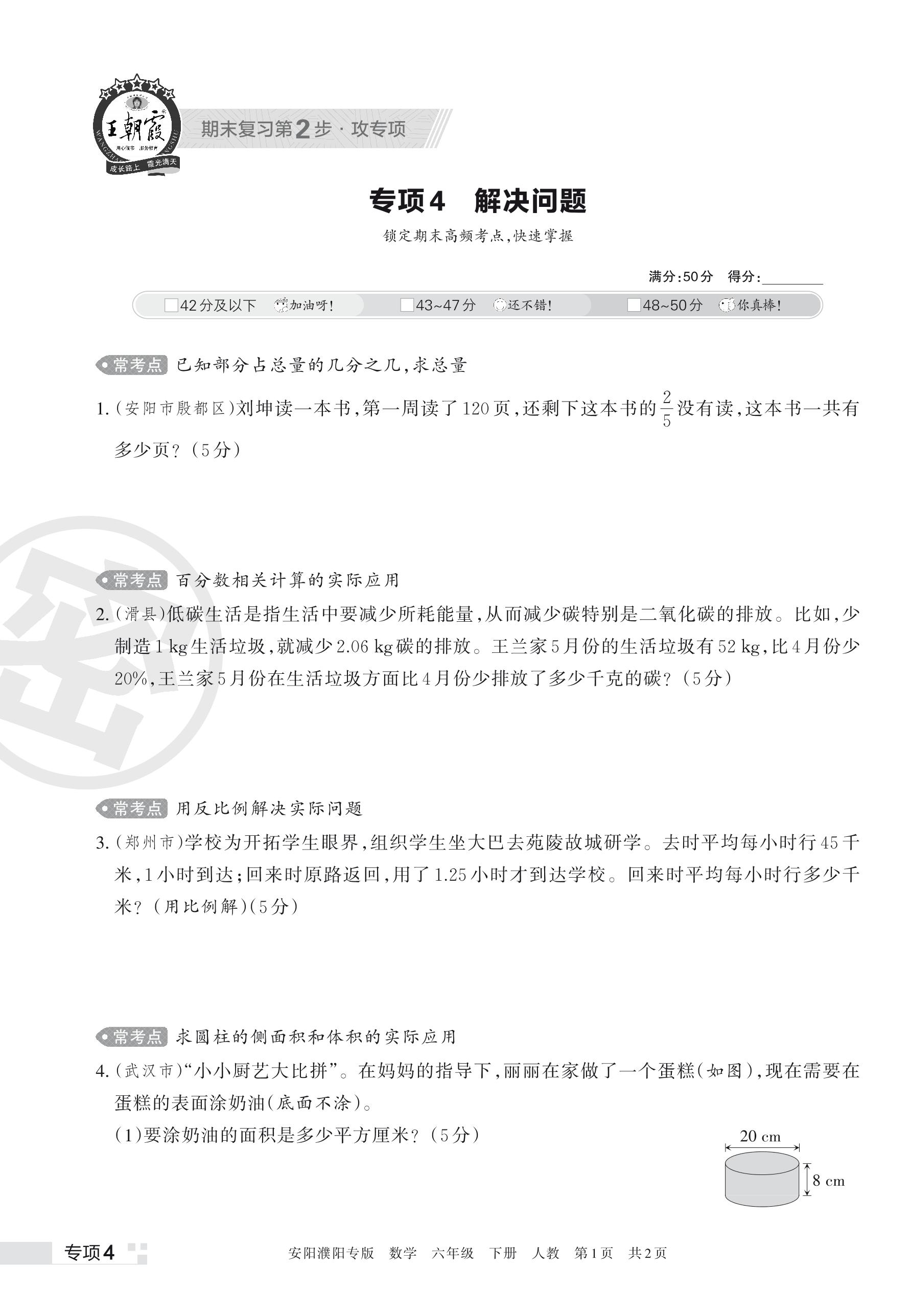 王朝霞期末专项卷——解决问题六年级下册数学(人教版)_R230504141716564【4】
