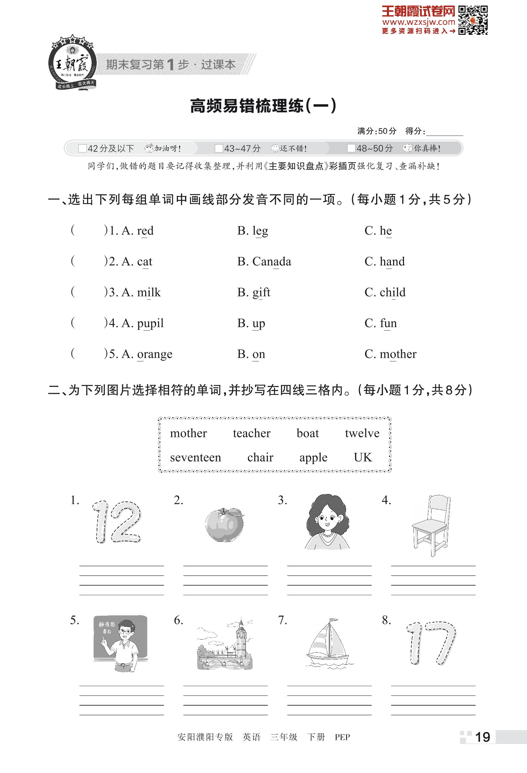 王朝霞期末过课本——高频易错梳理练(一)三年级下册英语(PEP版)_R230504142409772