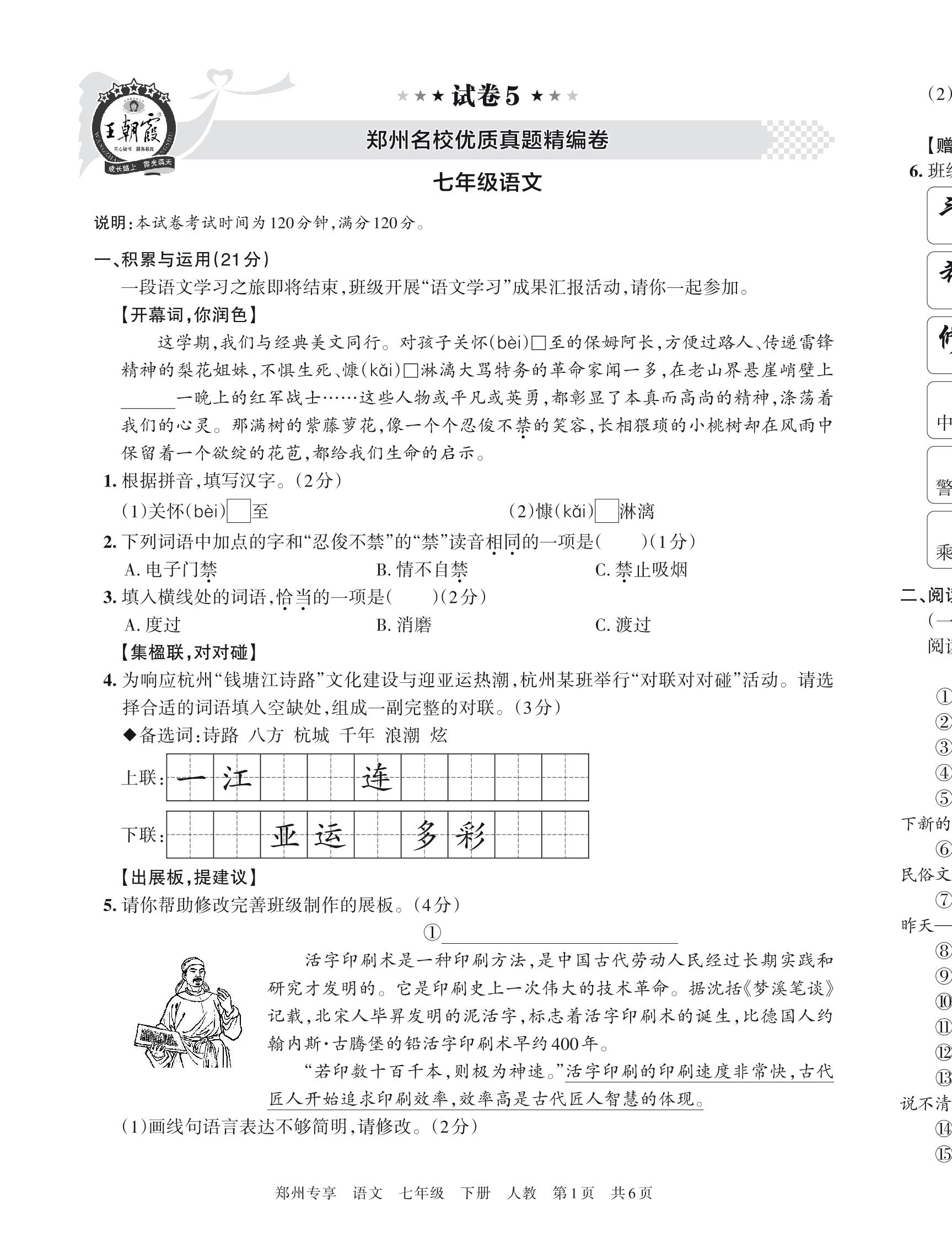 郑州名校优质真题精编卷郑州名校优质真题精编卷七年级下册语文(人教版)【5】