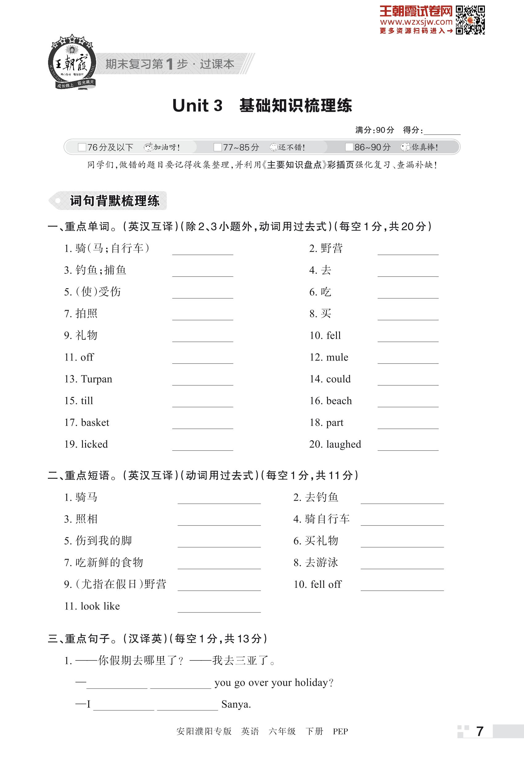 王朝霞期末过课本——Unit 3 基础知识梳理练六年级下册英语(PEP版)_R230504144410652