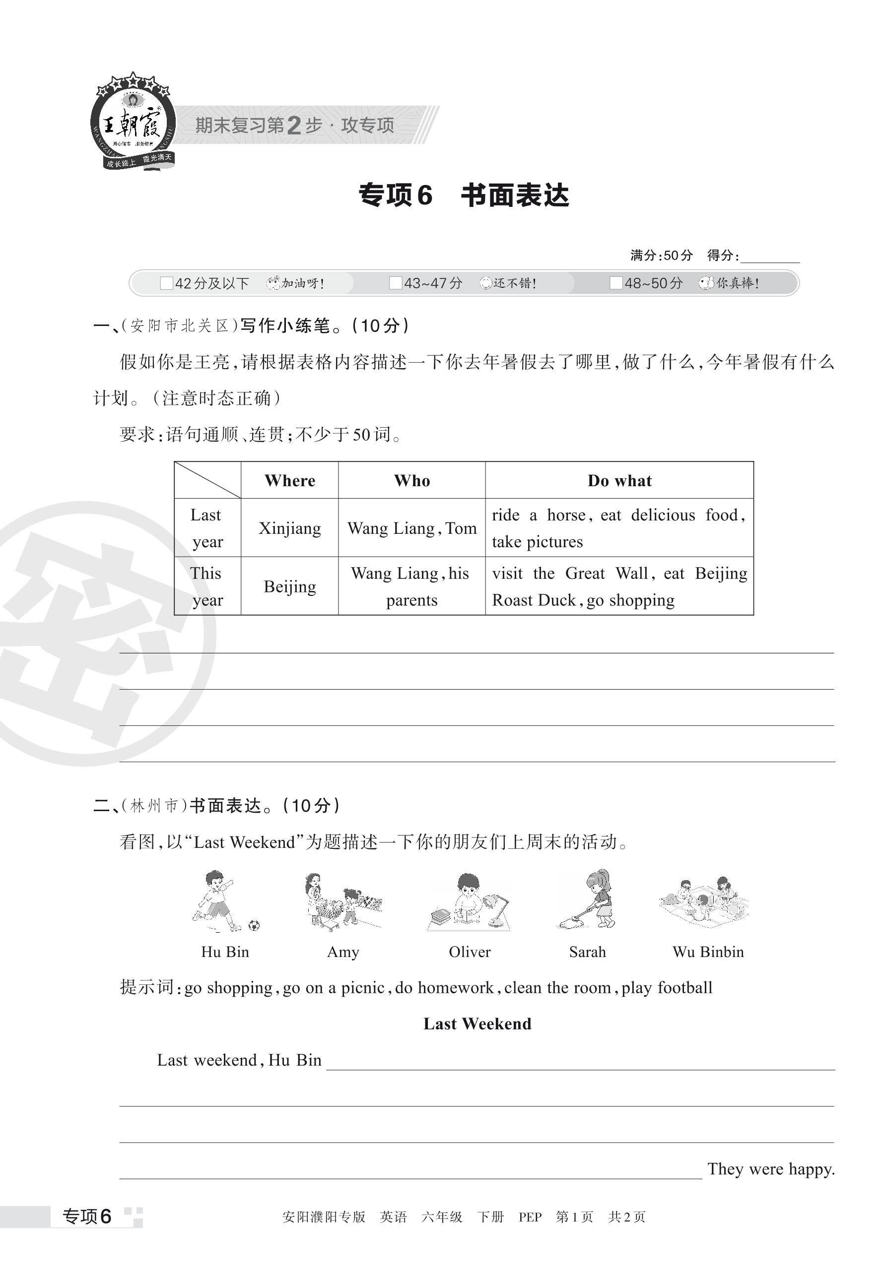 王朝霞期末专项卷——书面表达六年级下册英语(PEP版)_R230504144411337【6】
