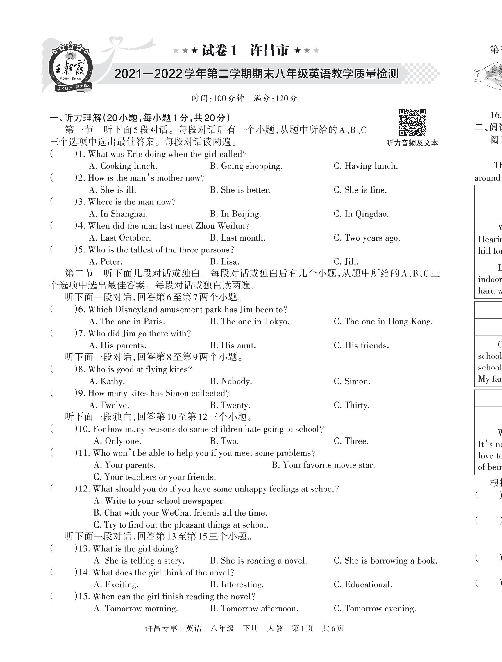 许昌市2021—2022学年第二学期期末八年级英语教学质量检测(人教版)【1】